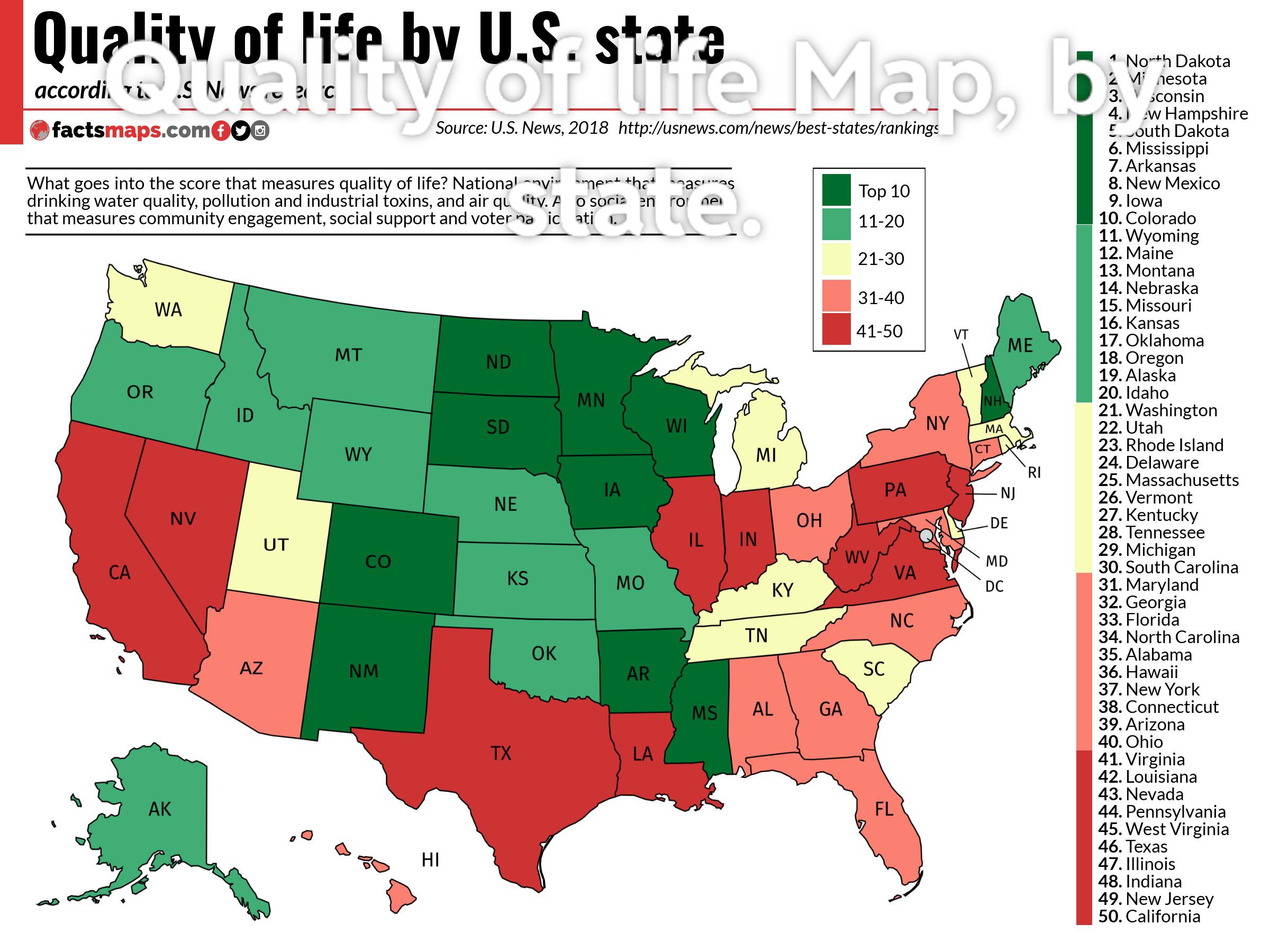 Quality of life Map, by state. Submitted by Floperator1492 t3_10n8qq8 on January 28, 2023 at 6:59 AM in Maine 53 comments 32