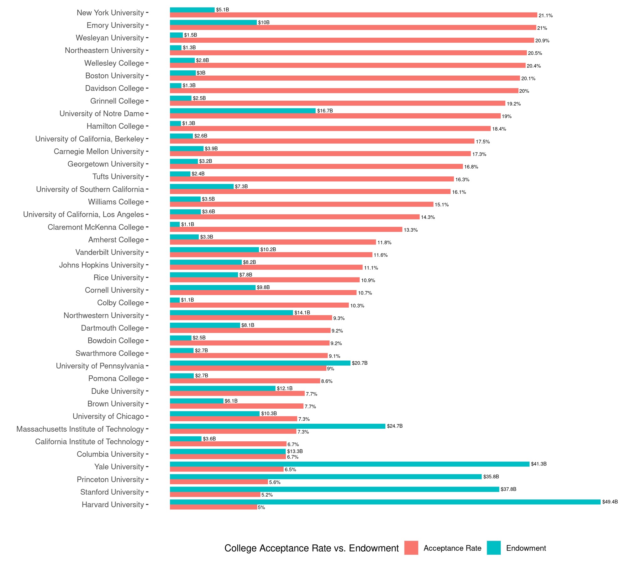 [OC] American College Acceptance Rate vs. Endowment. (My first attempt to visualize using R) Submitted by MasterDio64 t3_11t36xz on March 16, 2023 at 7:06 PM in dataisbeautiful 25 comments 72