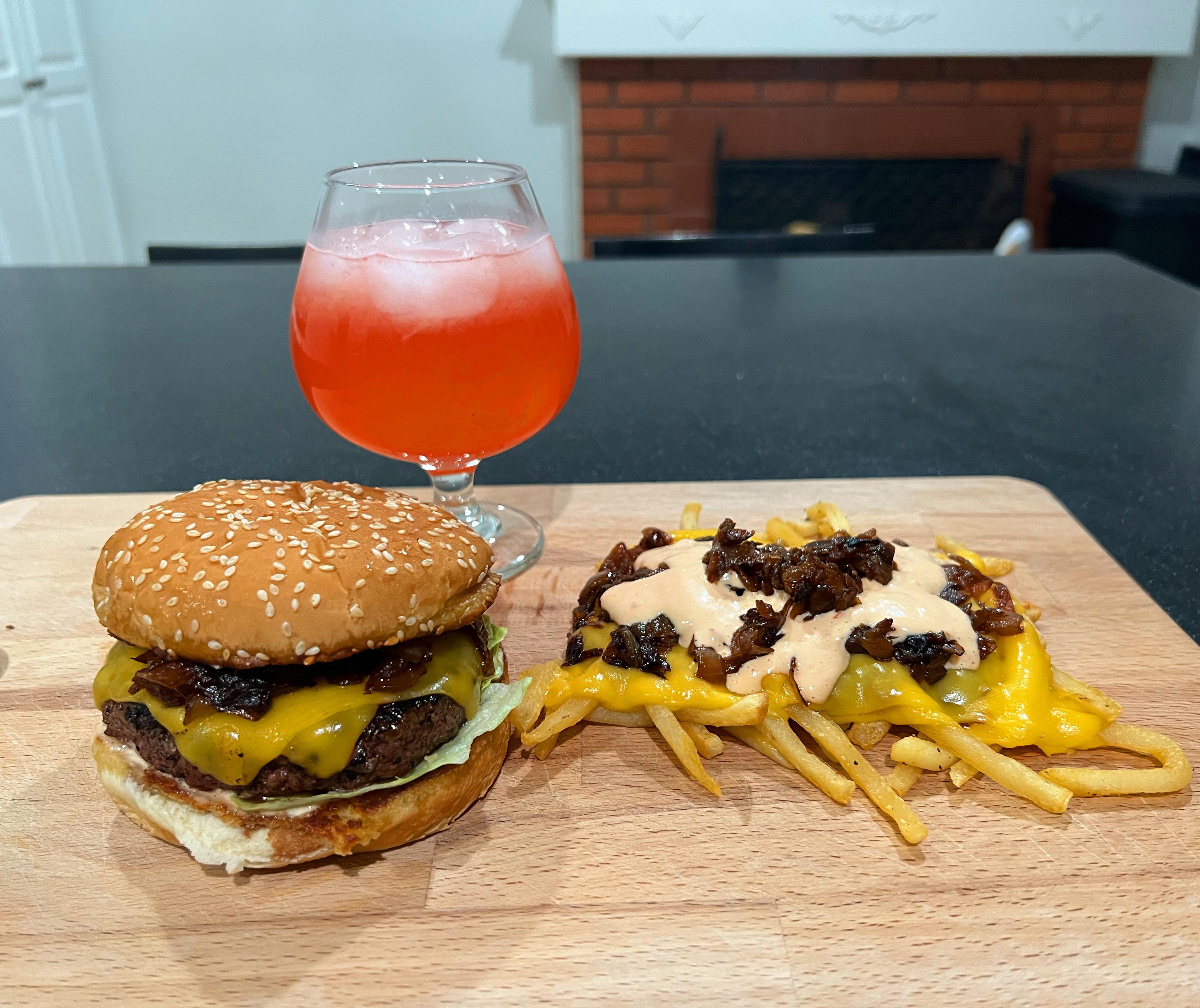 Reply to comment by water2wine in [homemade] In-n-Out-style chuck & brisket cheeseburger, animal fries, and pink lemonade. by he-was-number-wan