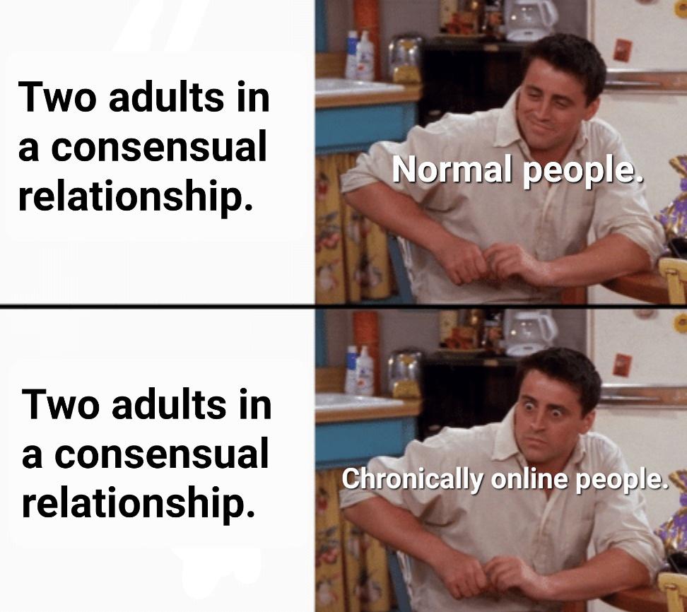 You say age gap, they say grooming. Submitted by Playingpokerwithgod t3_yf0pat on October 27, 2022 at 7:18 PM in memes 6 comments 18