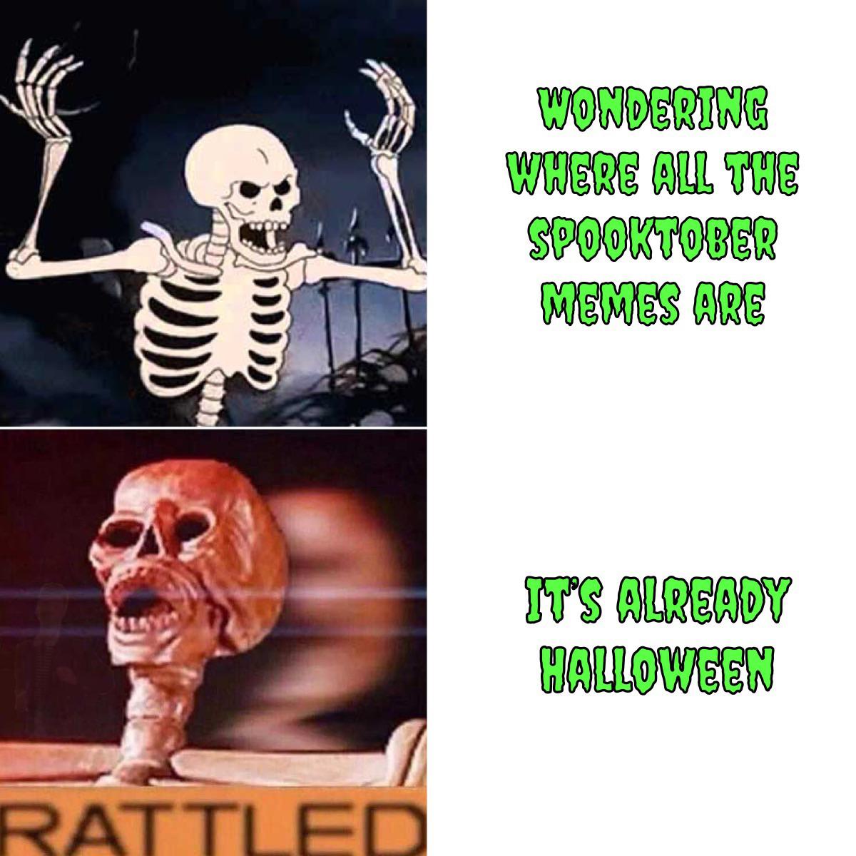 PotatoComplete t1_iuk0k2b wrote on October 31, 2022 at 10:28 PM These are the new Halloween memes mad post about no Halloween memes Permalink 2