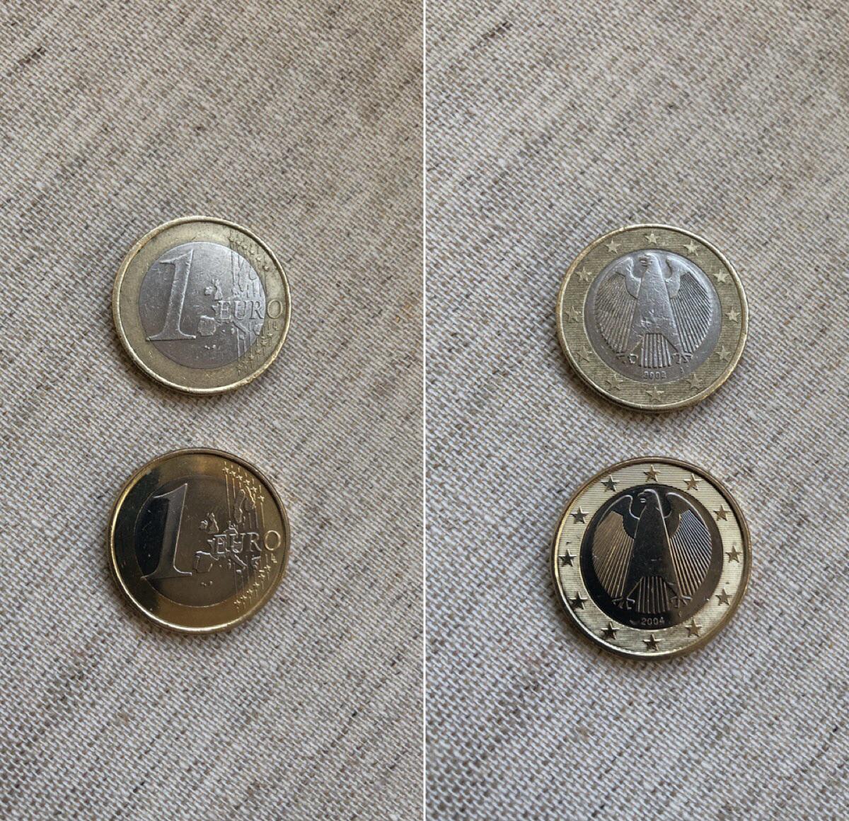 The new looking one was made in 2004. The other one in 2002 (you can see it on the right side of the picture, at the bottom of the coins)