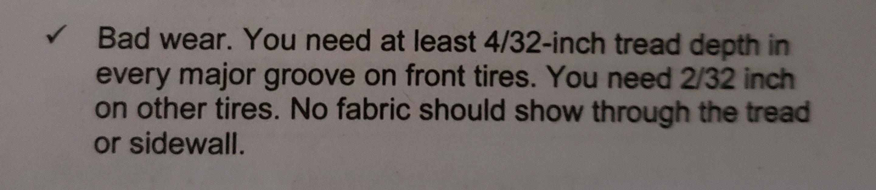 Tire treads are measured in 32nds