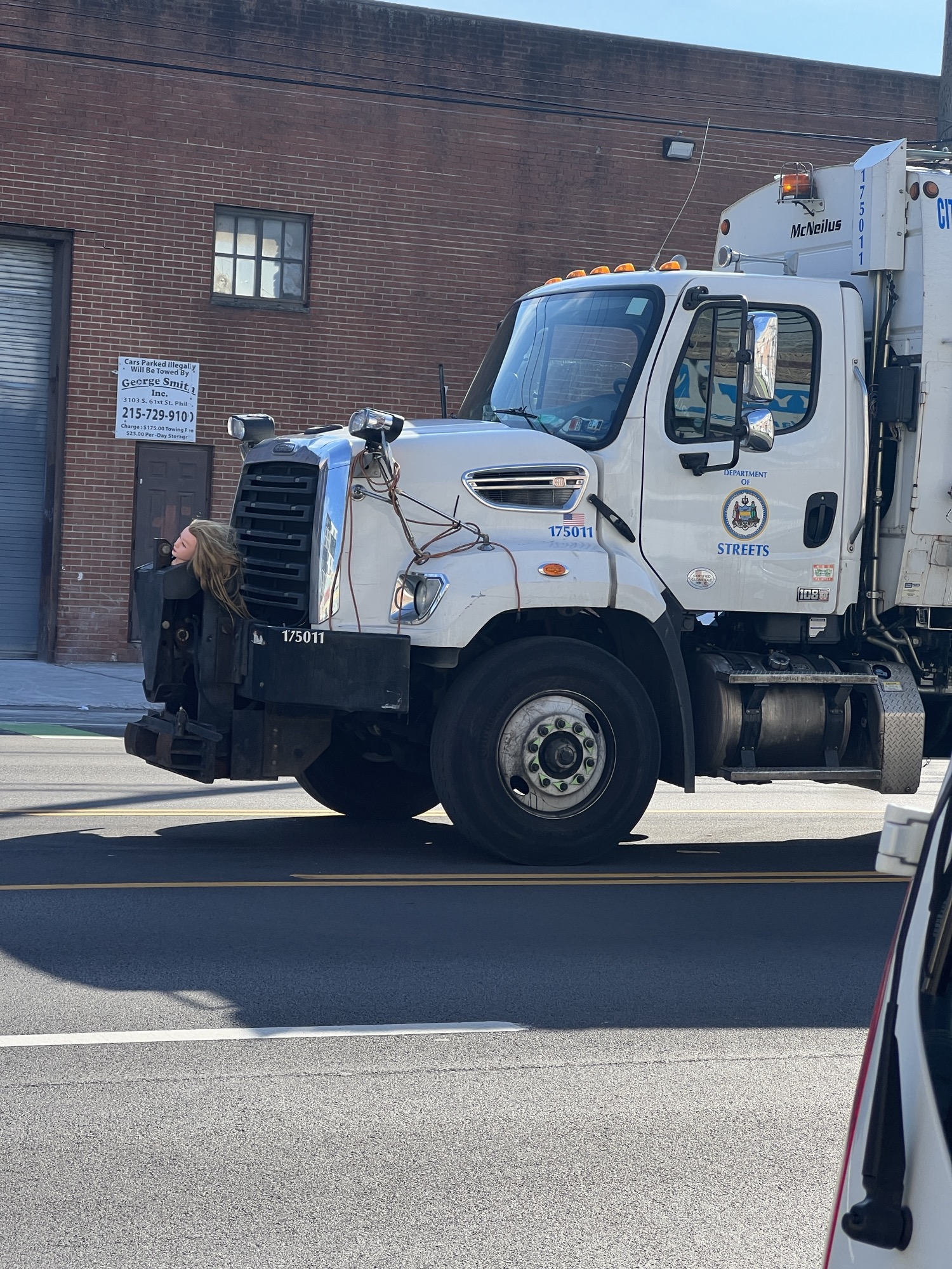 I live in southwest Ohio, and the waste collection facility always has decrepit dolls or stuffed animals hanging on the weigh station barriers. Oh, they also have a bowling ball garden lol. I think it's just a waste collection/cleaner job sense of humor.