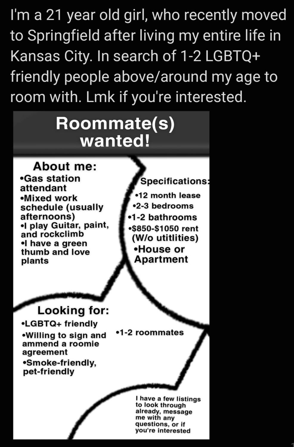 Looking for roomies! Submitted by knotilus-nunn t3_11amq2a on February 24, 2023 at 8:46 AM in springfieldMO 29 comments 28