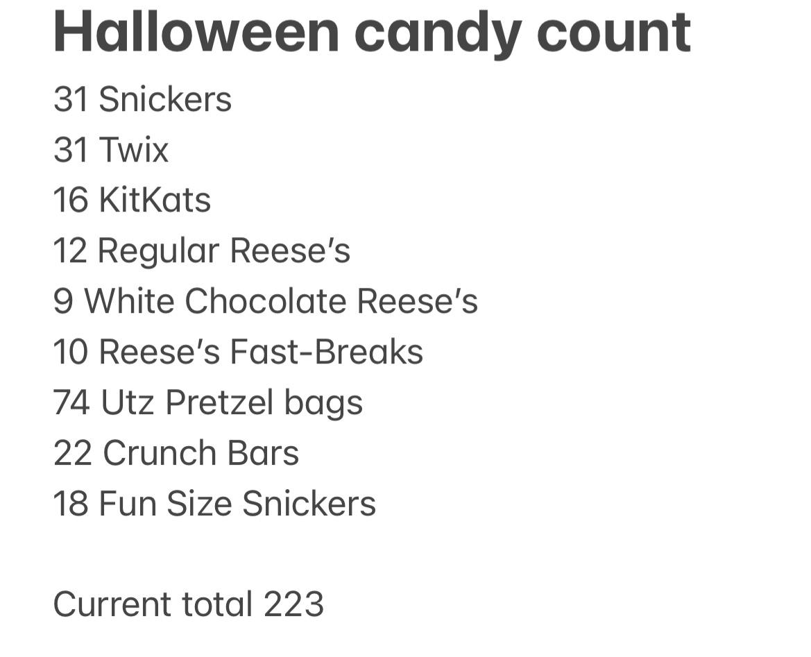 Do you guys candy count for your trick or treaters Submitted by BardownskiSnipes t3_yiouc4 on October 31, 2022 at 9:02 PM in pittsburgh 6 comments 0