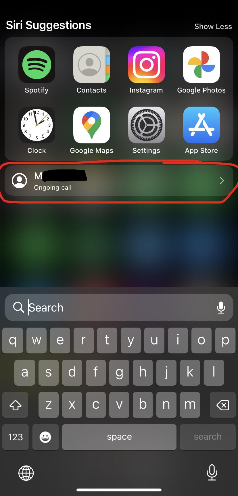 Reply to comment by rojasotw23 in Does anyone know what ‘ongoing call’ means in Siri suggestions? It’s been there for two days now by BarnacleAwkward7723