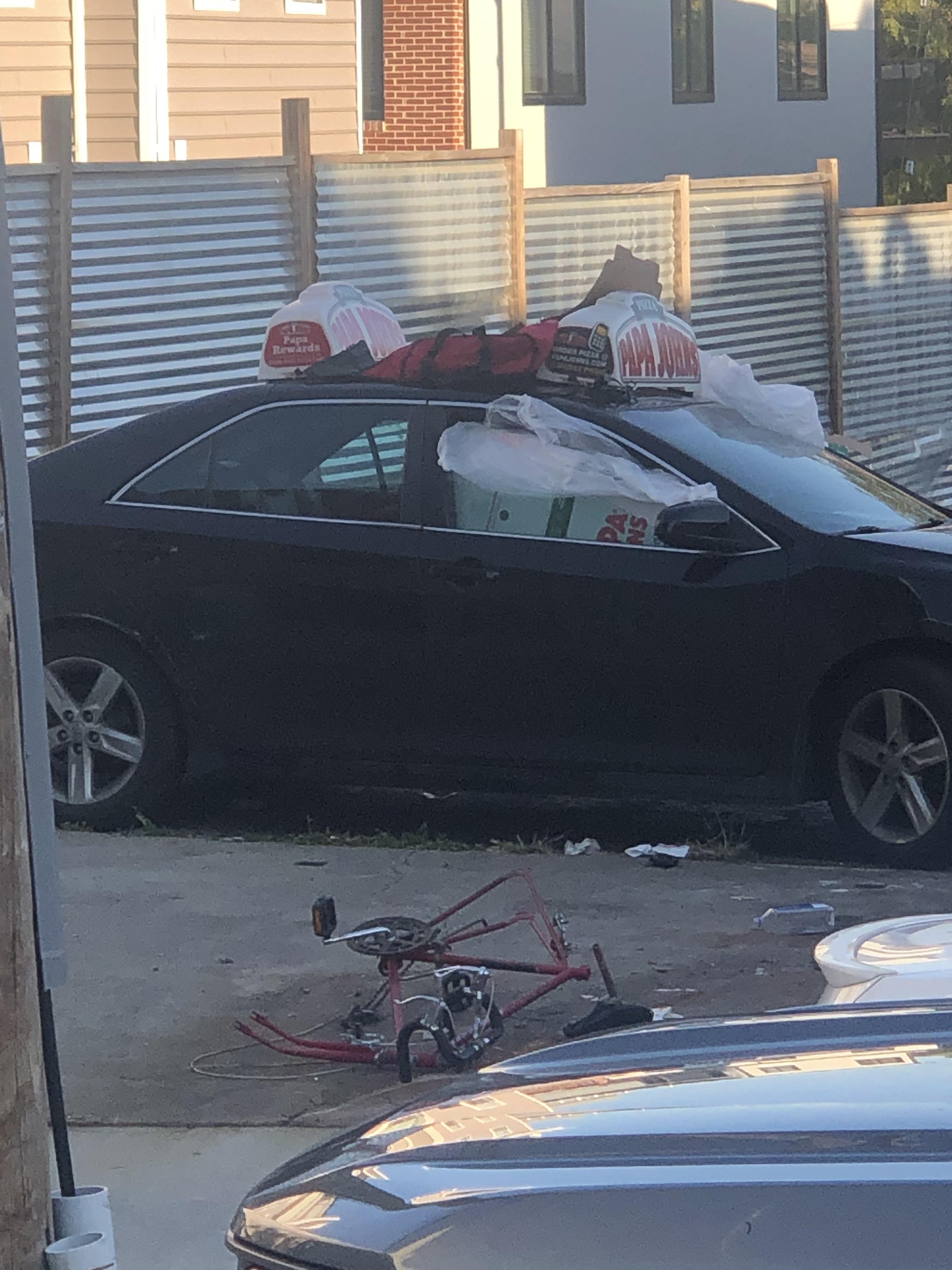 It’s in a Papa John’s parking lot. Don’t think it was stolen.