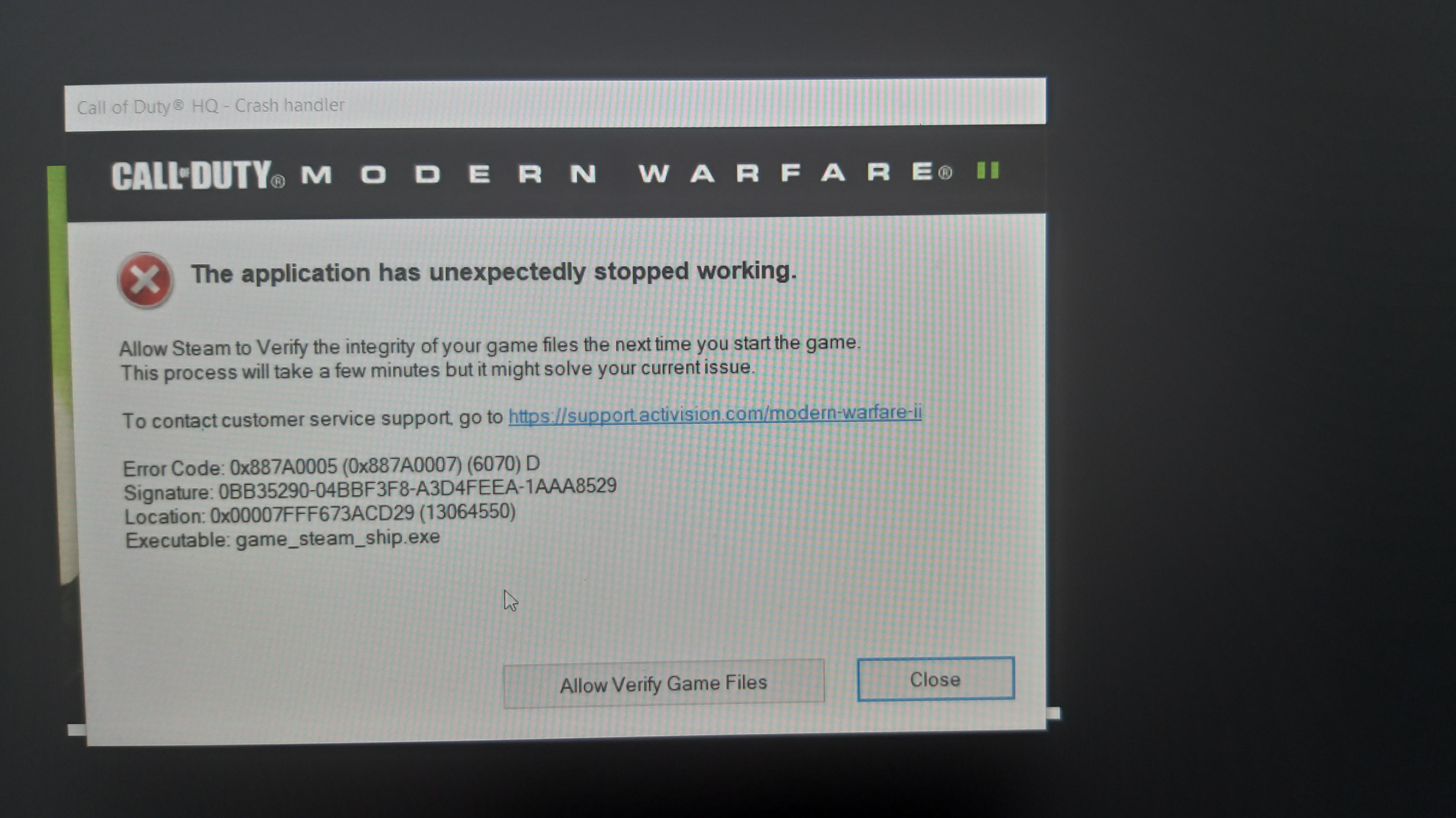 I just bought MW2 BE on steam and the game is constantly crashing telling me to verify game files. I verified my files multiple times, updated my drivers multiple time and reinstall the game three times. Is this temparely problem or If you have a solution please text me Submitted by CaceEcac t3_ygjui0 on October 29, 2022 at 1:36 PM in gaming 13 comments 0