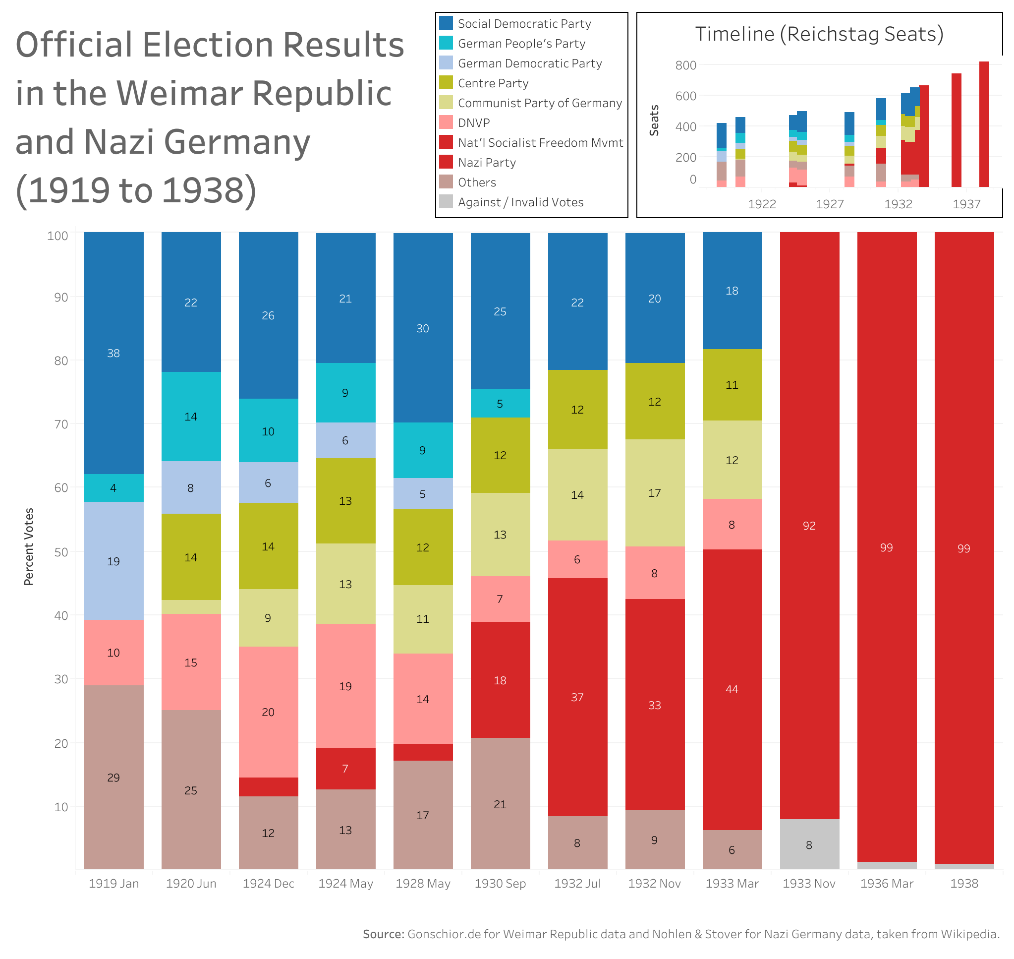 [OC] Election Results in the Weimar Republic / Germany (1919 to 1938) Submitted by Dk1902 t3_ynphp8 on November 6, 2022 at 1:08 PM in dataisbeautiful No comments 4