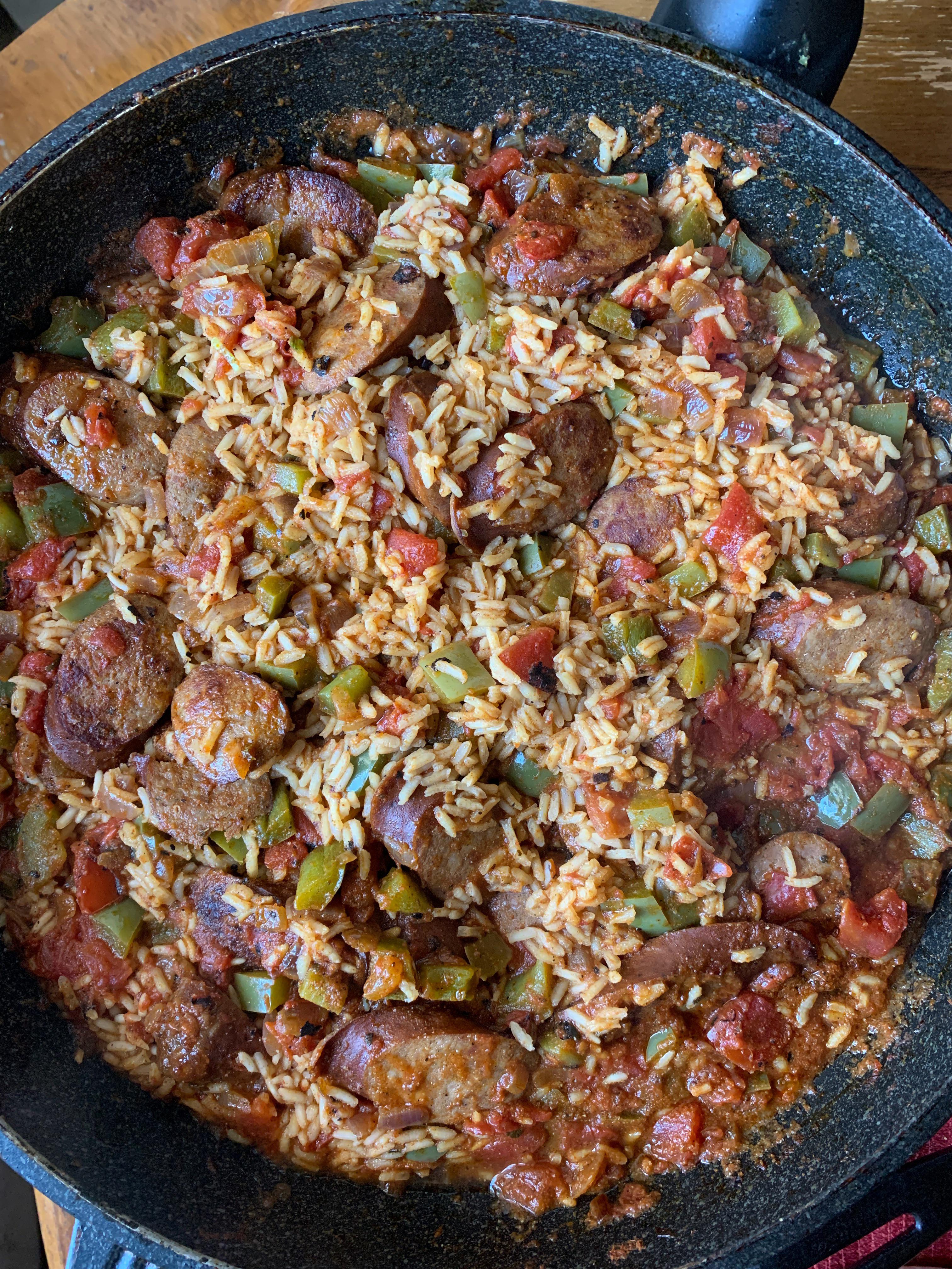 El_SanchoPantera OP t1_jdshb0x wrote on March 26, 2023 at 9:01 PM Reply to [homemade] Cajun sausage and rice by El_SanchoPantera Andouille sausage or Cajun sausage x 2 Green bell pepper, diced x 1 Long grain rice x 1 cup Chicken broth x 1.75 cups Sweet onion, diced x .5 Paprika x 1 tsp Oregano x .5 tsp Dried thyme x .5 tsp Garlic powder x .5 Onion powder x .5 Cayenne Pepper x 1 tbsp (or to taste) Fire roasted tomatoes x 1 can Green onions, sliced x Garnish Permalink 17