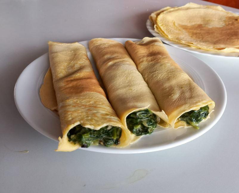 Because, you know, these crepe like pancakes aren't sweet. You should try them out. I think I have the recipe somewhere in the comments. They are very versatile and can go with both sweet and savoury fillings. The spinach and gorgonzala combo also goes surprisingly well together.