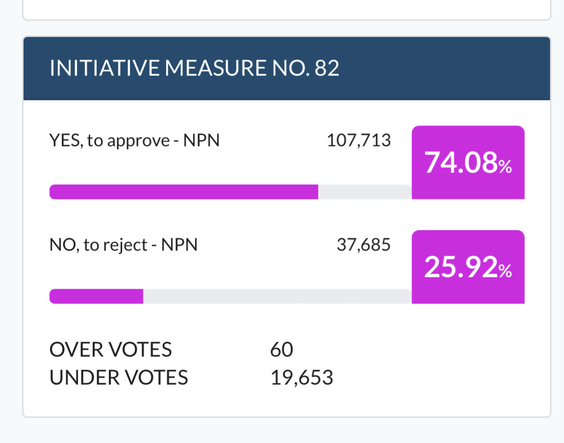 Looks like Initiative 82 passed pretty overwhelmingly Submitted by LoganSquire t3_yqh1j1 on November 9, 2022 at 12:04 PM in washingtondc No comments 5