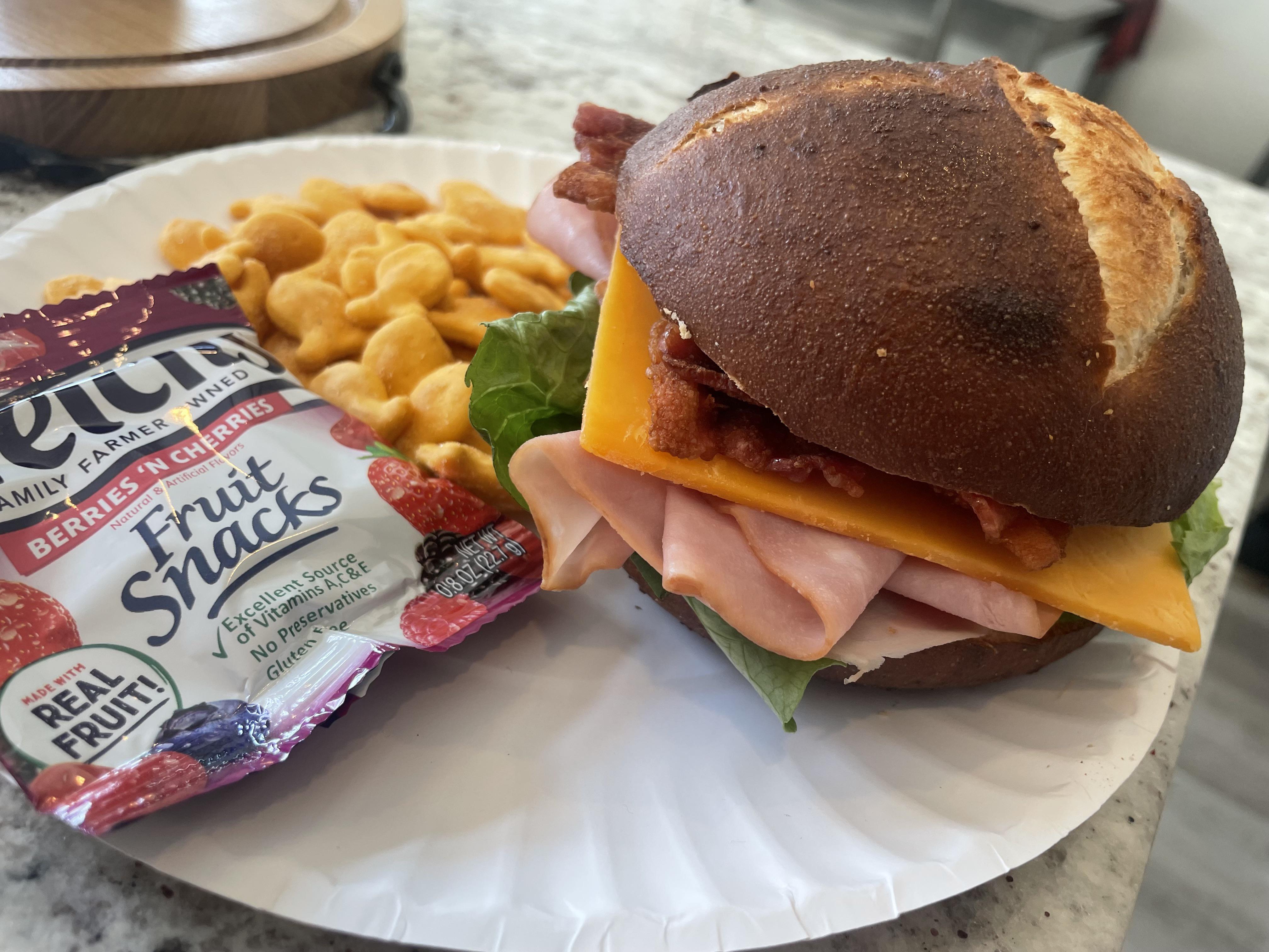 [Homemade] A Parent’s Lunch: Ham and cheese with bacon on a pretzel bun, goldfish, and some fruit snacks Submitted by Rumpleskillsskills t3_10p8bqv on January 30, 2023 at 5:21 PM in food 44 comments 331