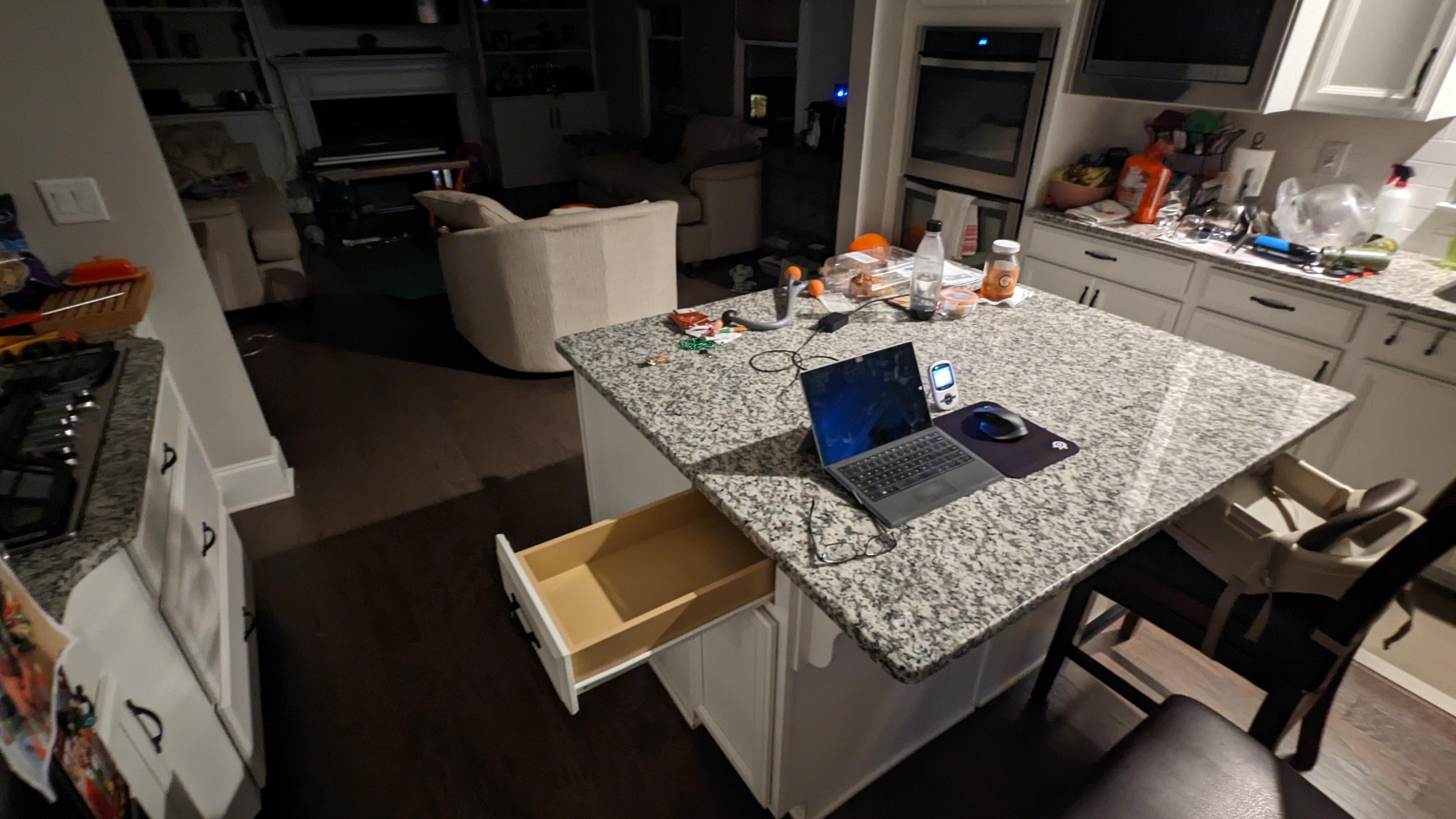 The counter stuff fluctuates rapidly. It will be pristine one night and looks like this the next. (Parents who cook).