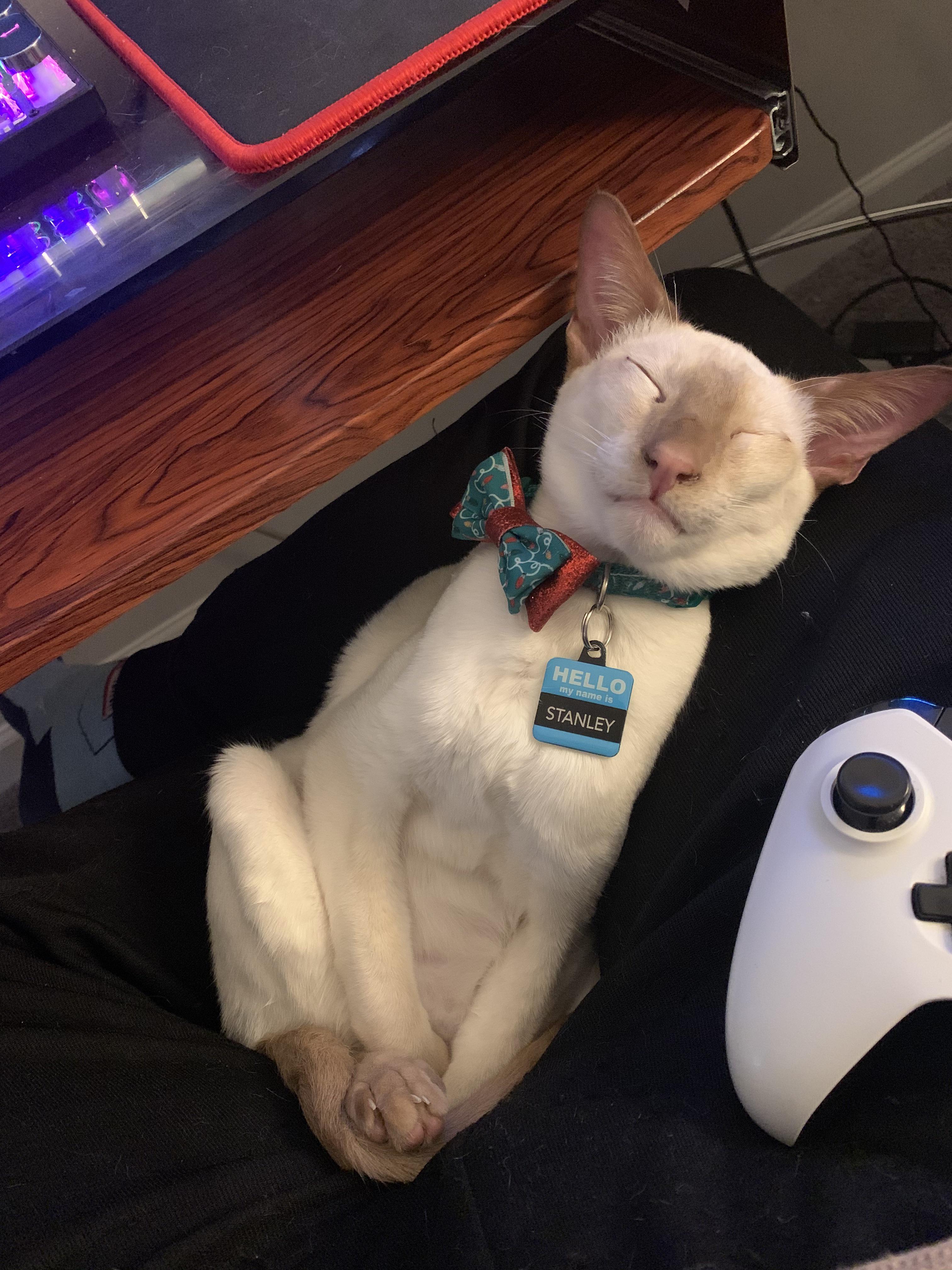 Can confirm, he is truly handsome. He was always keen on taking off his collars but you slap a bow tie on it and all of a sudden it’s his favorite thing.