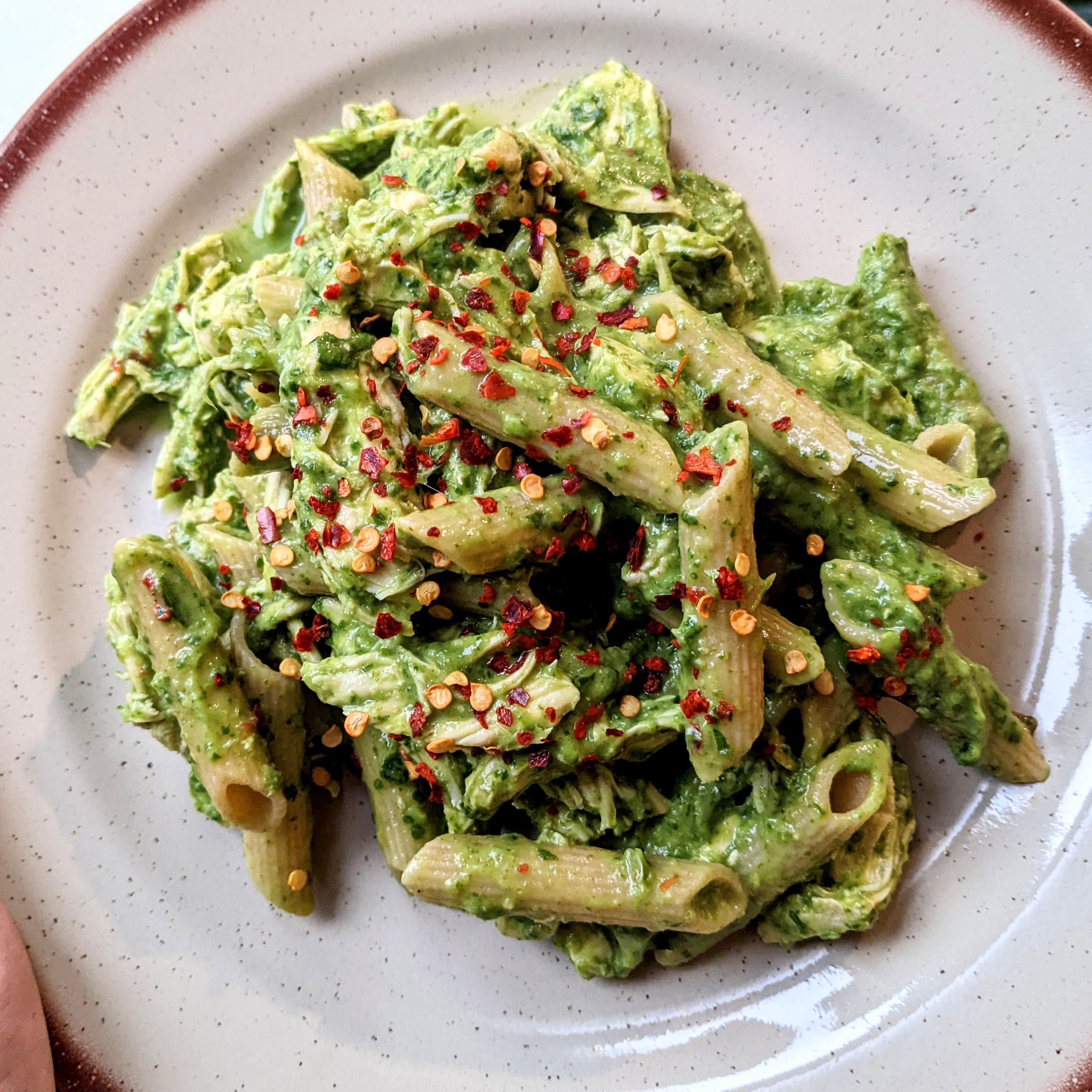[homemade] chickpea pasta with garlic, avocado and spinach sauce with shredded chicken. Submitted by thatgirlisback t3_z2pqg9 on November 23, 2022 at 1:54 PM in food 11 comments 164