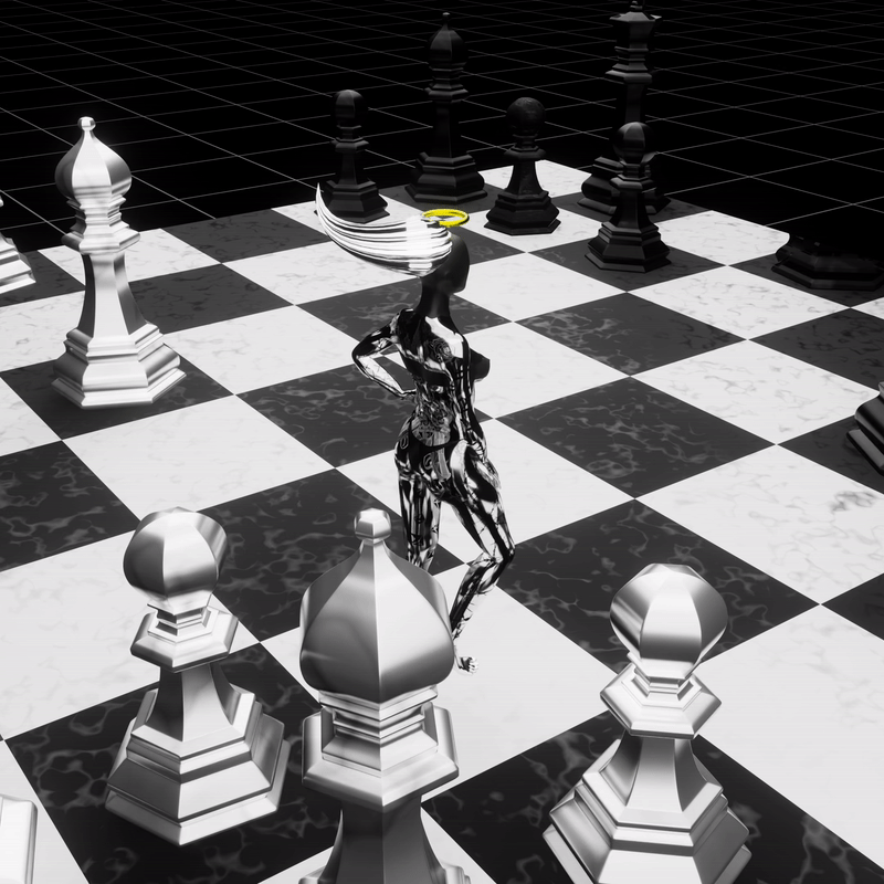 I think the general concept is too ridiculous. A woman with a halo, with relatively large butt and breasts, who is made of a metallic material is wearing a cloth like bikini? Jumps as if she needed to jump and do a somersault jump over some obstacle, when there is nothing that she need to jump over. When she hits the enemy queen the piece shatters in all directions for some reason.
