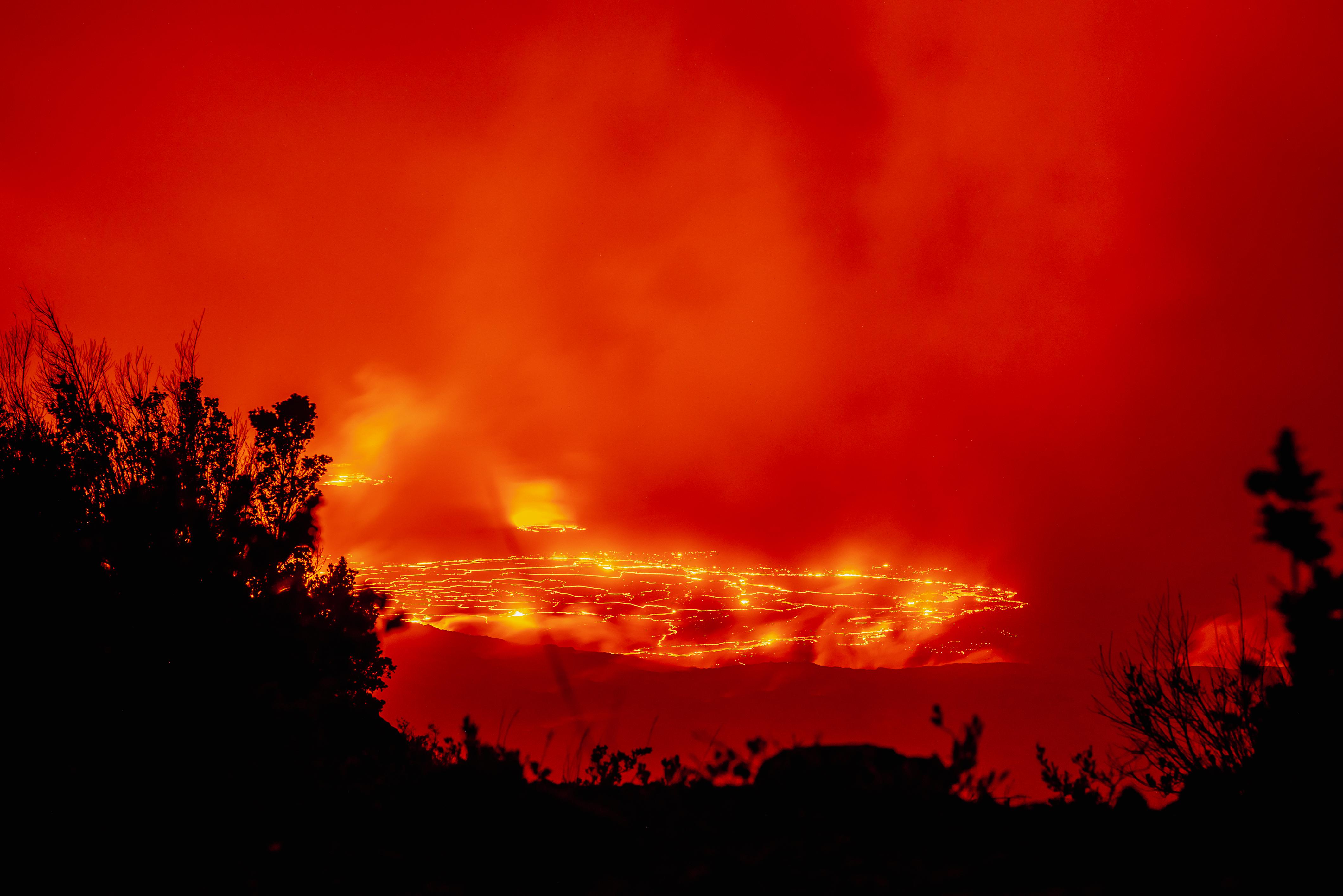 The lava is only in Halemaumau Crater at the summit of Kilauea in Hawaii Volcanoes National Park. This eruption, almost any crater rim viewing site has clear sights of the lava lake and fountains.
