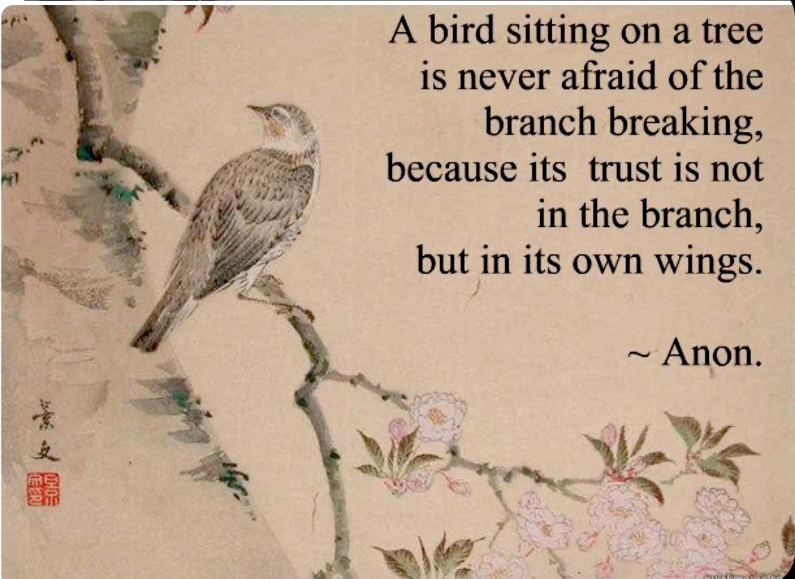 "A bird sitting on a tree is never afraid of the branch breaking, because it's trust is not in the branch, but in its own wings." - Anon