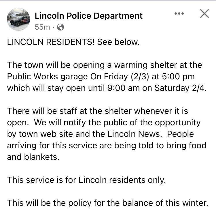 Reply to comment by JayhawkInMaine in Warming Center info- Lincoln by JayhawkInMaine