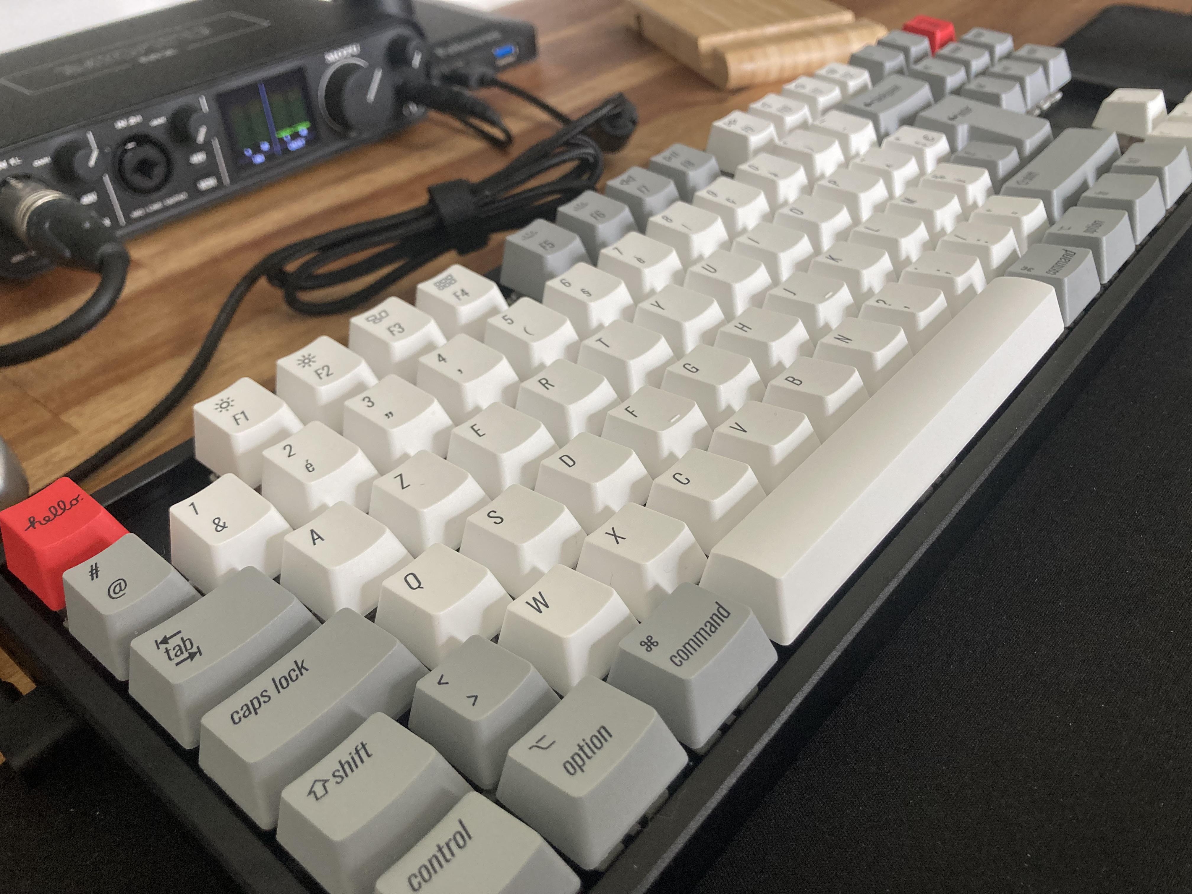 They are the retro keycaps from Keychron (the only one I could find with an ISO Mac French azerty layout, actually). They're meant to look like old school Apple keyboards :)