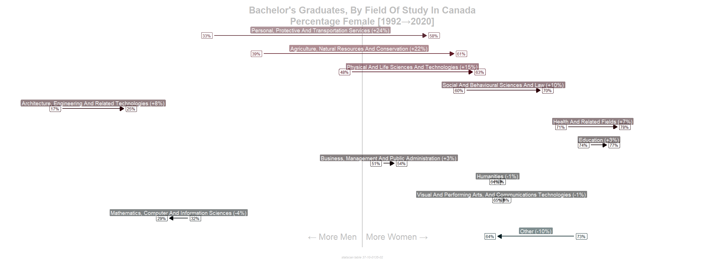 Reply to comment by skyebreak in [OC] Fraction Female Batchelor Degree in Canada By Field of Study, 1992 -> 2020 by hswerdfe_2