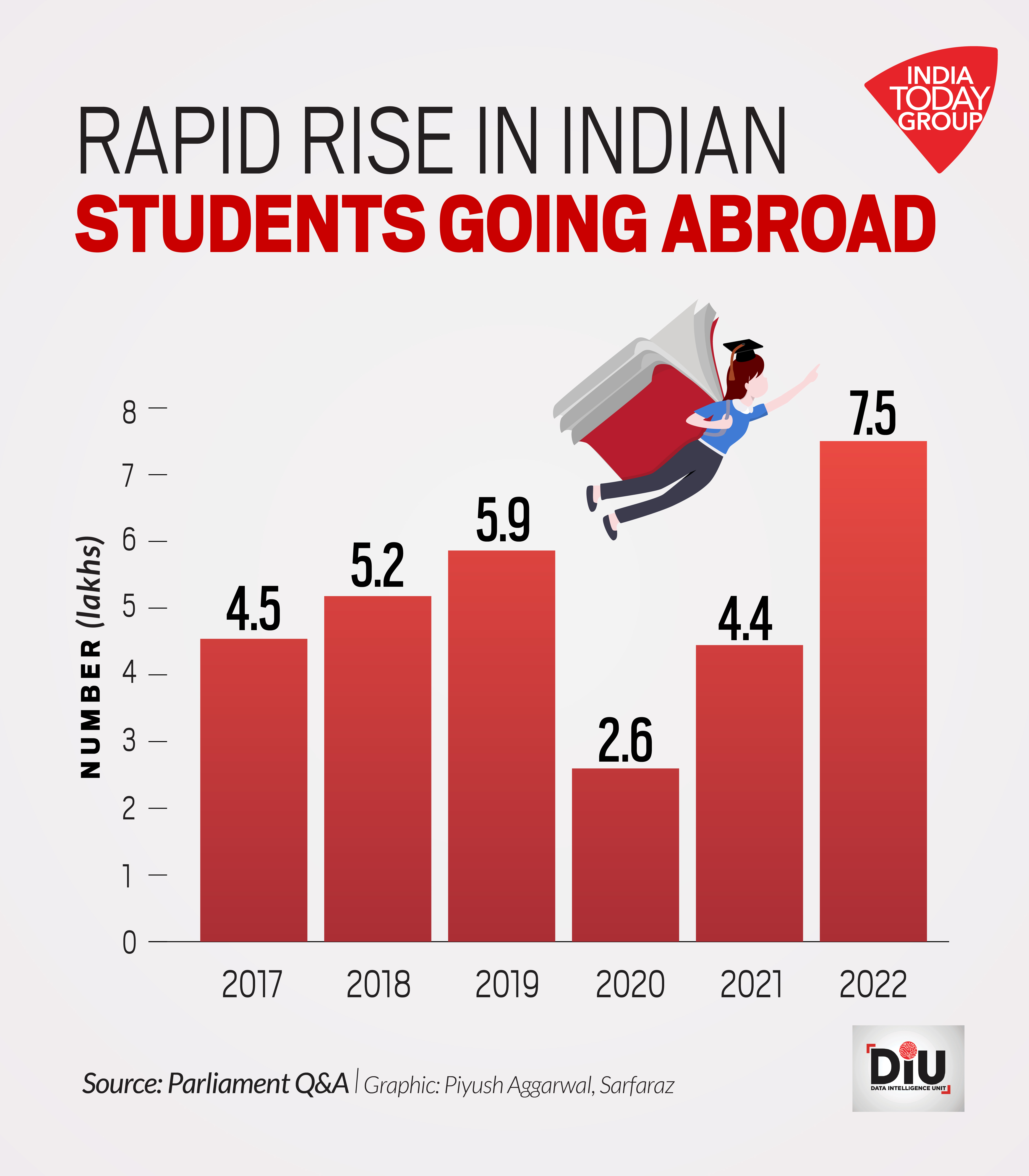 The number of Indian students going abroad witnessed a substantial jump of 68% in 2022. At nearly 7.5 lakh, it was the highest in the last six years, as per the data shared by the government in the ongoing budget session of the parliament.