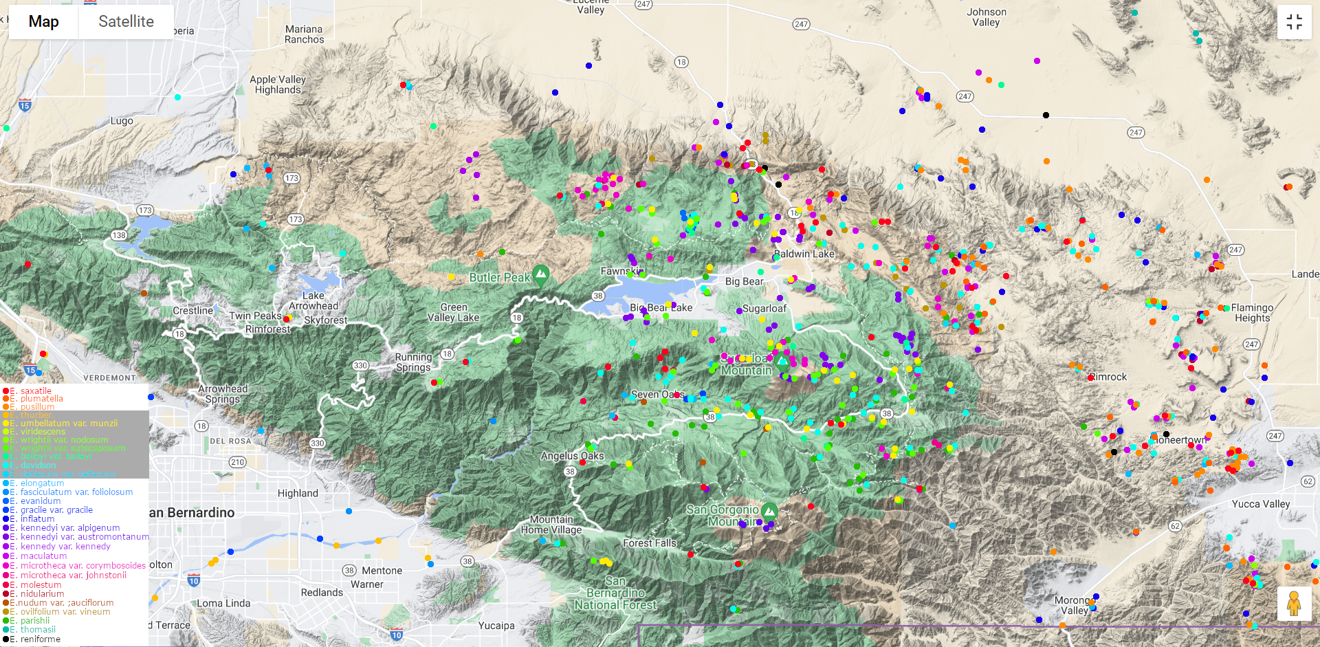 Reply to comment by James66766 in [OC] I wanted to map out all the species in the genus Eriogonum for my area. Each dot is an observation and each color represents a different species. by James66766