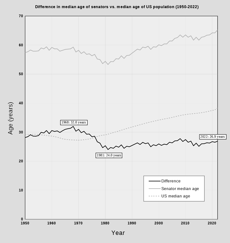 Makes sense since the word senator is derived from the Latin, “senex” meaning old man. (Also the word senior).
