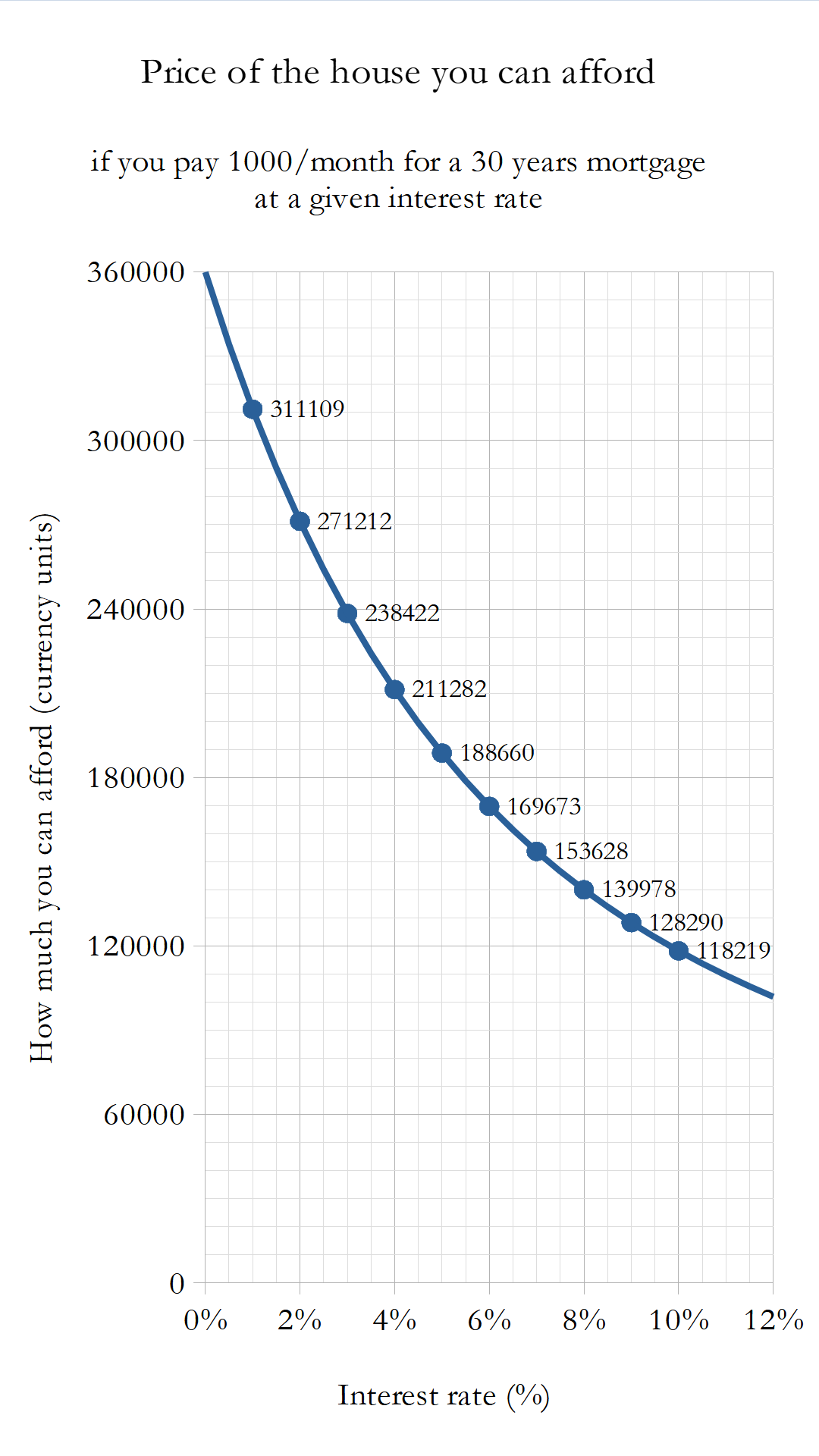 Reply to comment by Emfx in [OC] House price you can afford by paying 1000/month for 30 years vs. interest rate by hmiamid