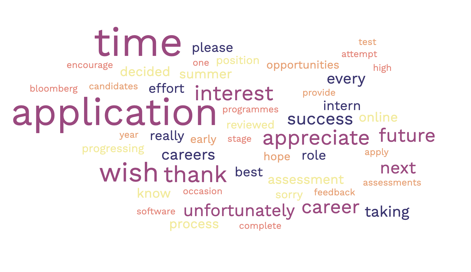"Thank you for your time completing 3 assessments, 5 interview stages, cover letter and manually inputting your entire CV into our website but unfortunately we won't be needing you. Spend 20 hours trying again next year!"