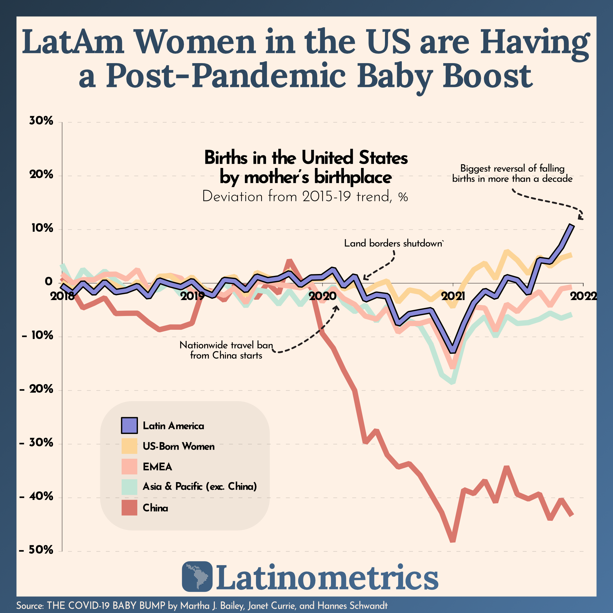 [OC] Fertility rate in the US boomed for the first time in 15 years in 2021. LatAm-born mothers drove the highest increase. Submitted by latinometrics t3_yqni7m on November 9, 2022 at 4:18 PM in dataisbeautiful 18 comments 43