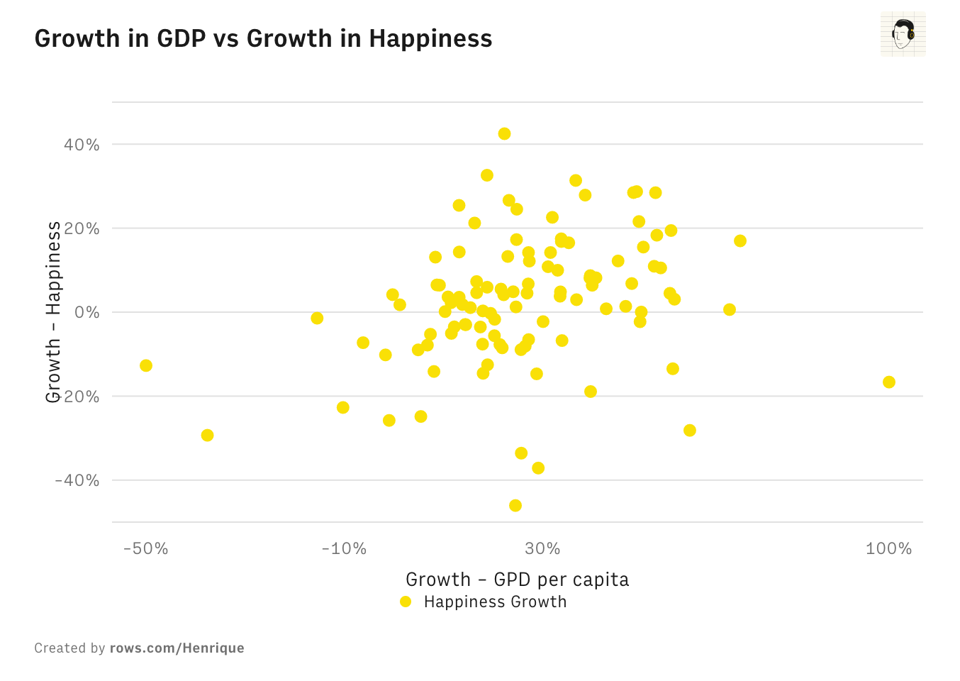 [OC] Correlation between GDP Growth and Self reported happiness '09-'19 (dataset in comments) Submitted by hcrx t3_yt17kl on November 12, 2022 at 8:43 AM in dataisbeautiful 17 comments 11
