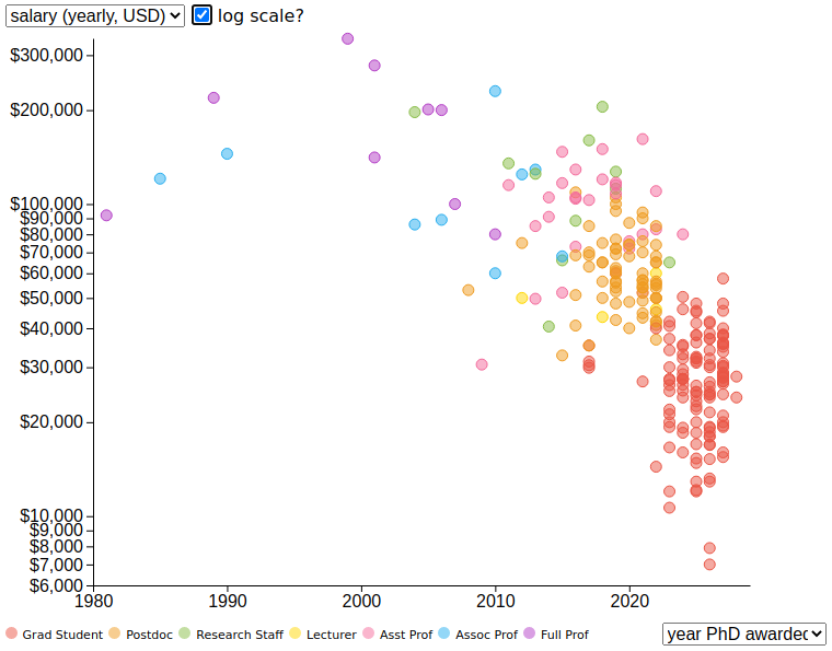 This is part of a project to increase salary transparency in academia and improve fair pay. Check out the interactive visualization and source code here: https://academicsalaries.github.io/