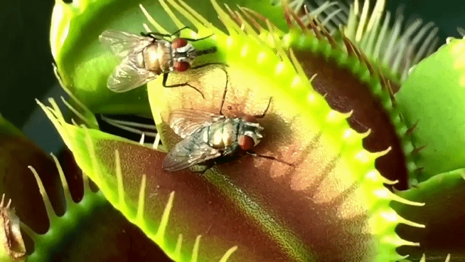 When something first lands in one of the traps and touches a trigger hair, the plant does nothing - it has to sense two trigger hairs being touched within 20 seconds for it to snap shut, and then it has to sense more hairs being triggered - five in total - in order for it to tighten even more and then start digestion.