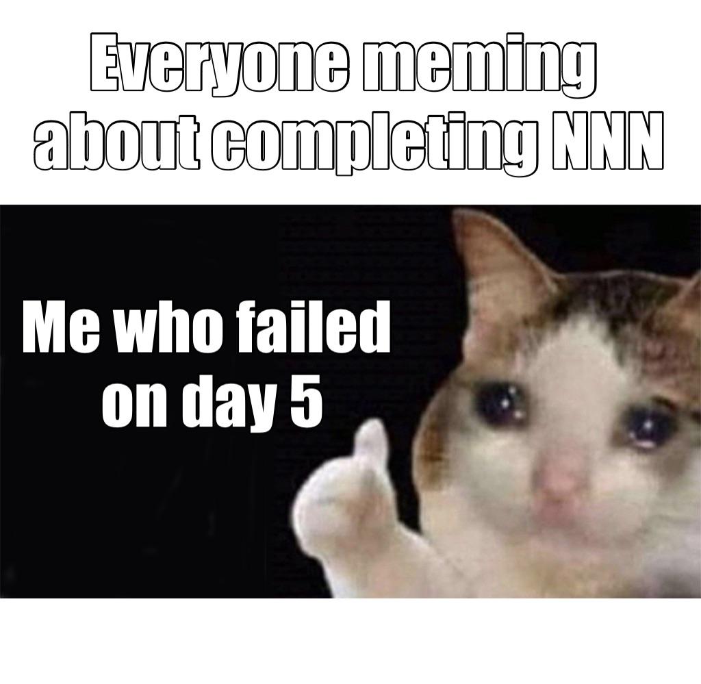 Kudos to those who genuinely lasted the entire month. Submitted by Above_Heights t3_z92i38 on November 30, 2022 at 8:38 PM in memes 6 comments 31