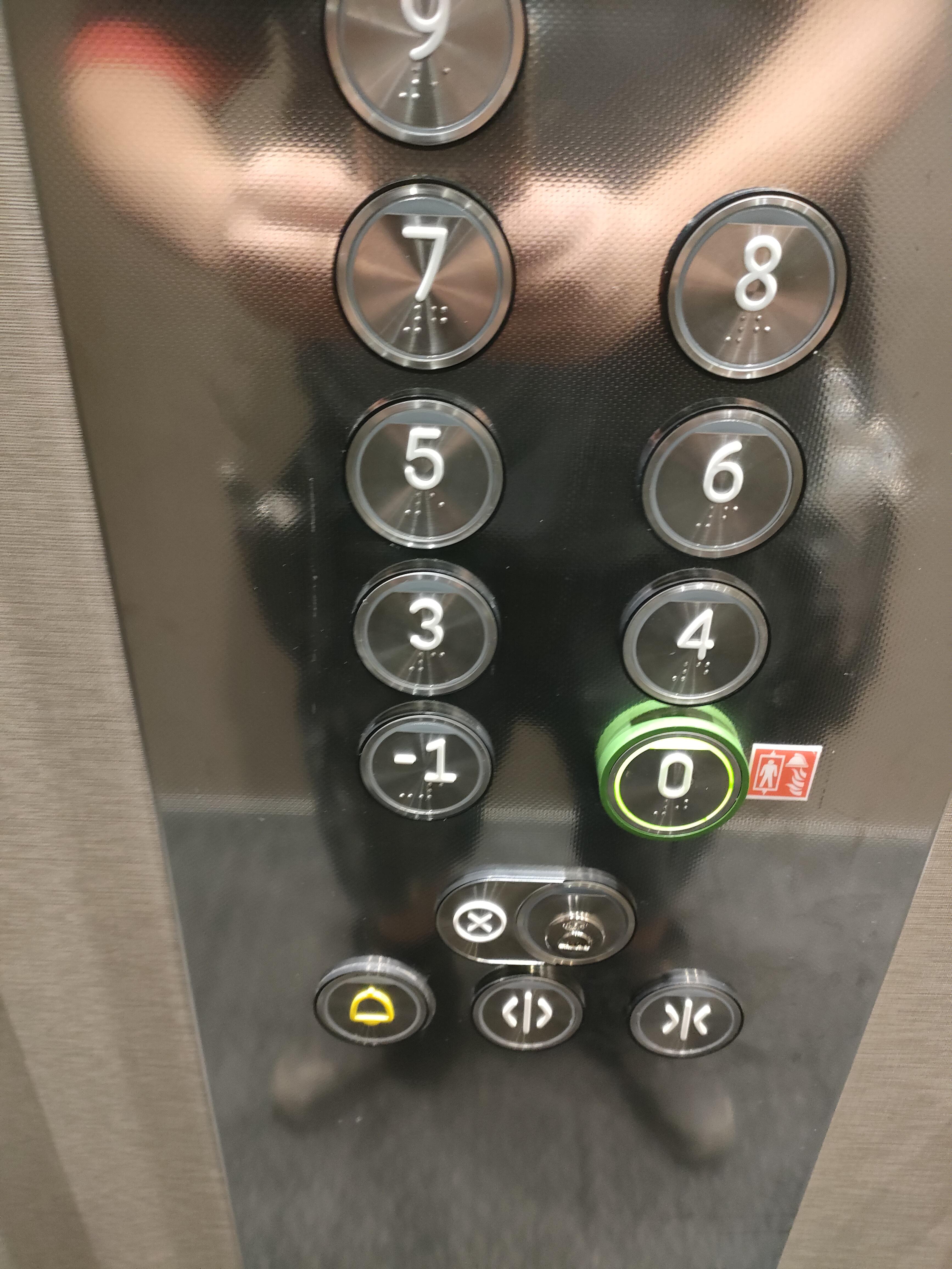 And only the floors where elevator actually stops at are listed on buttons, so if elevator goes from ground to directly 3rd, it will be shown as here. It's according to standard EN81-70.