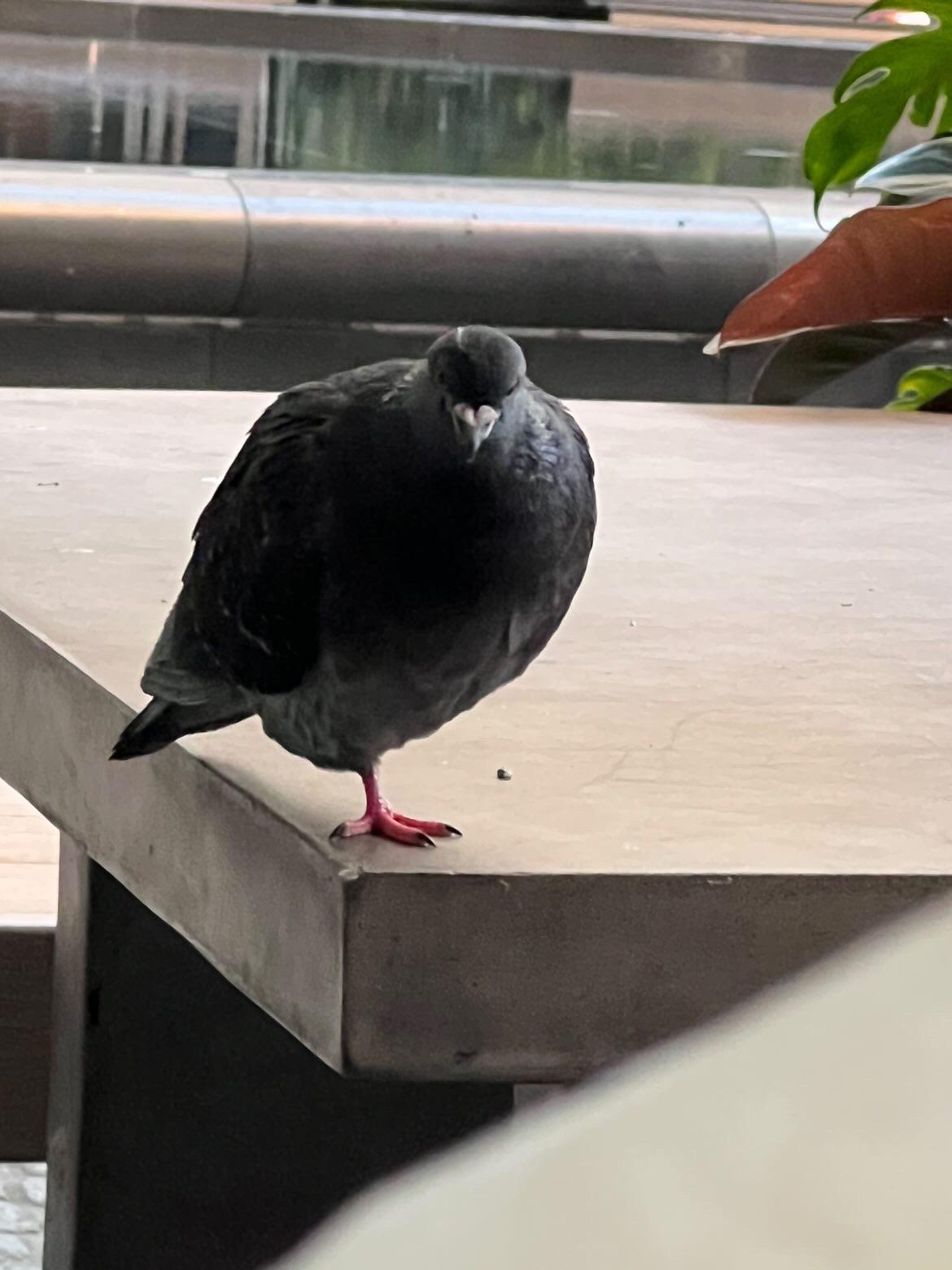 That pigeon lost a leg to either a predator or some hair/string. Note: pigeons prefer to walk instead of fly. If you see that bird again, the kindest thing to do would be to wring their neck. They rarely survive long after losing a leg. The next kindest would be to look up pigeon rescues near you
