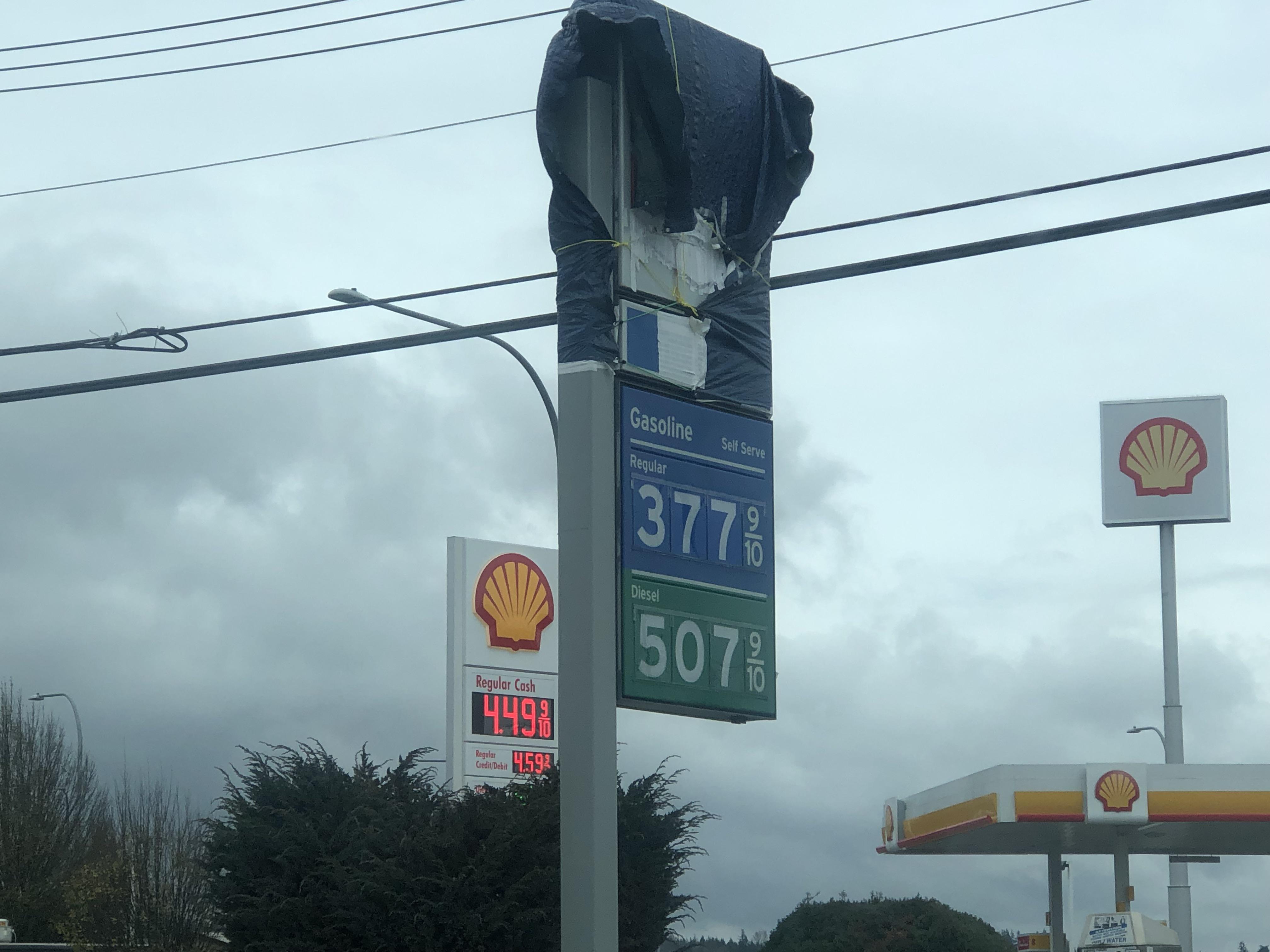 The station was very much open; I took the picture while filling up there. As for the math, I’m comparing the credit prices ($4.60-$3.78). Call it 72¢ if you pay cash, but it’s still a massive difference.