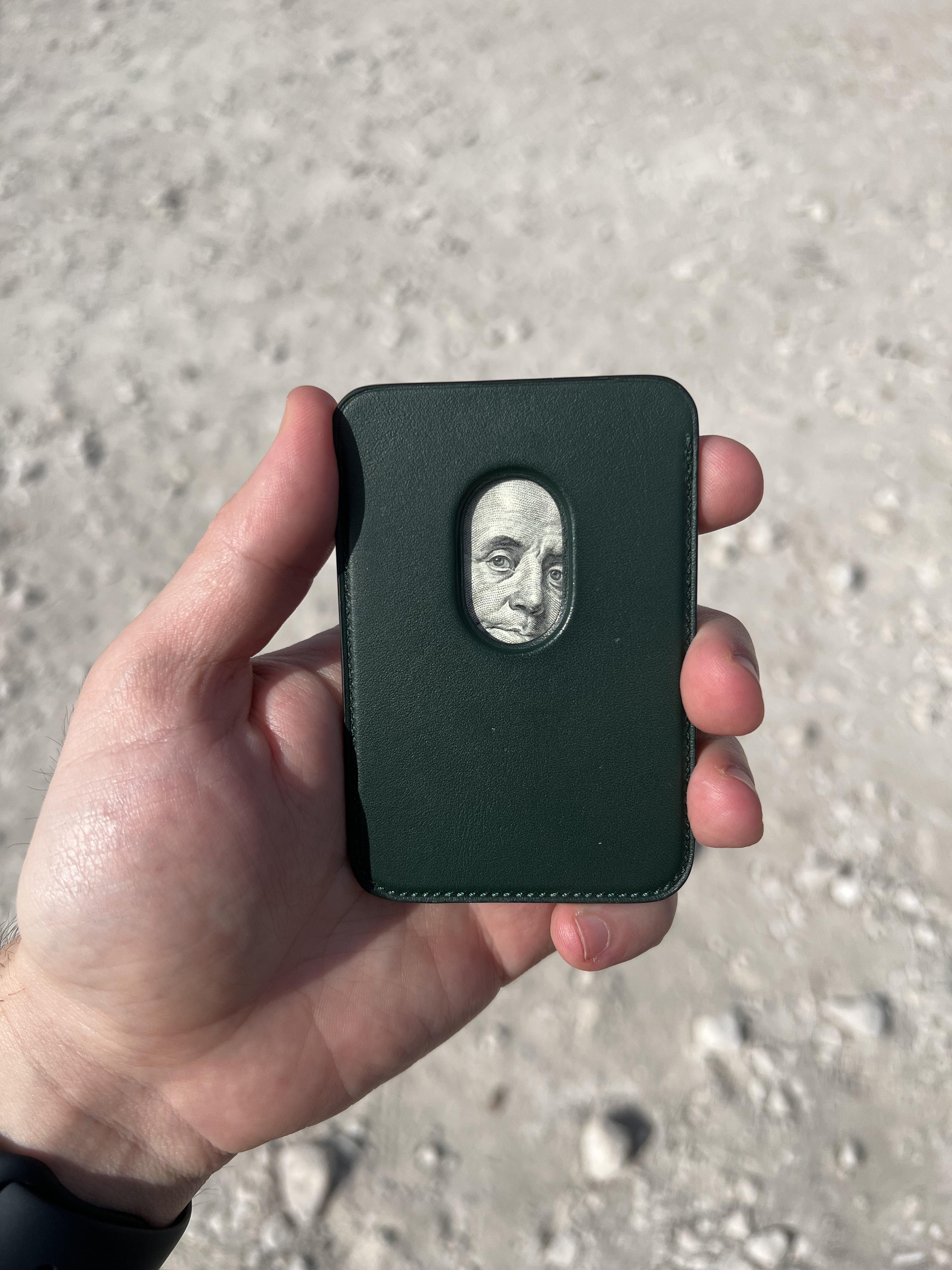 It’s an Apple magsafe wallet. It takes maximum 2 cards so I had to squeeze 100 usd without paying much attention. Later when I took the wallet up Mr. Franklin was looking at me 😄