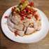 Overturn your bowl of poached chicken on to a plate and top with the spring onion oil mixture.