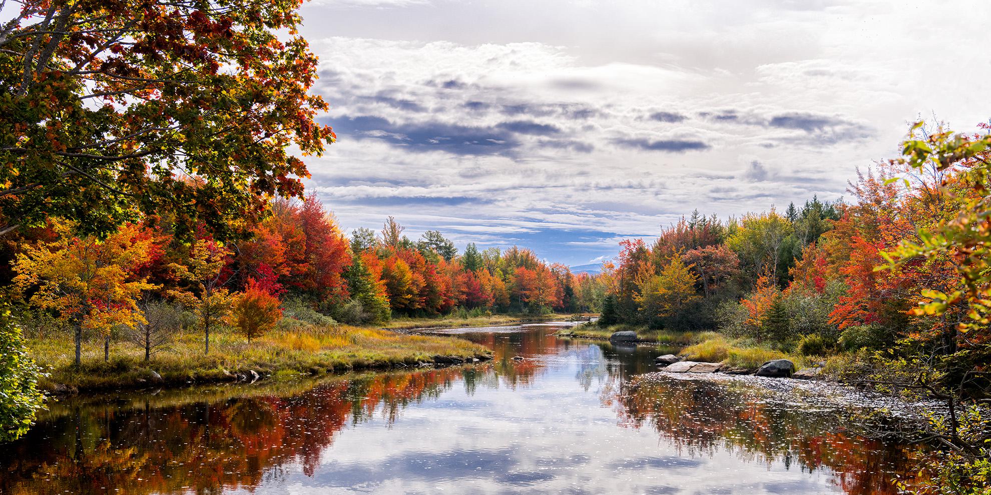 The onset of fall colors, cool air, and reflections in the water create a serene and calming scene. This is on west end of beautiful Arcadia National Park in the northeast corner of the USA