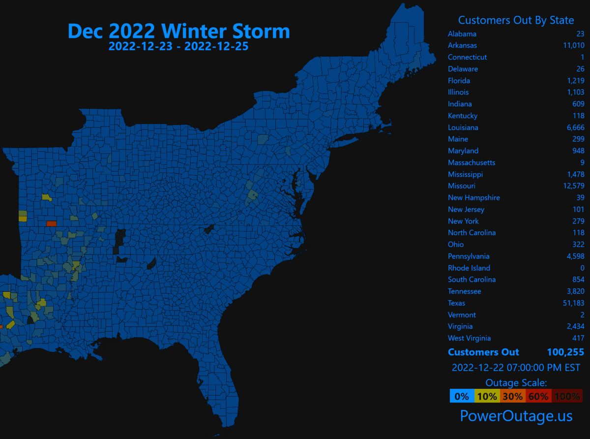 2022 Dec winter event power outage summary:
