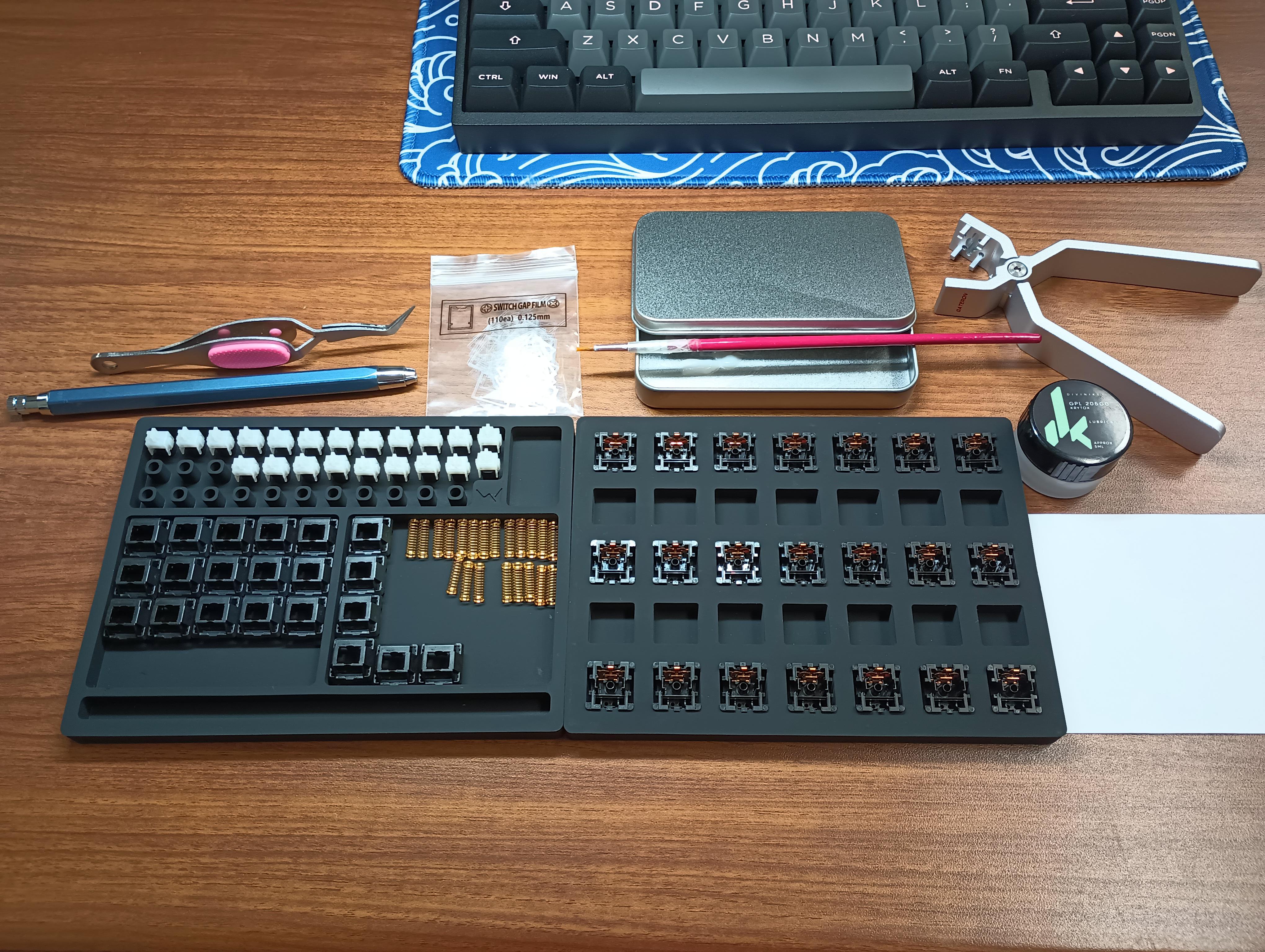Iām so very grateful to have invested in the Wuque Silicone Lube Station. Before, I was using a very cheap 3d printed āLubing Deckā that only held 15 switches. The 2 halves of this lube station are quite flat and fit well together to not take up too much space. The bottom half holder fits the switches snugly, with no undue pressure put upon the housing. The little stem holders do a decent job, and the spaces for the tops, springs and brush are so very appreciated.