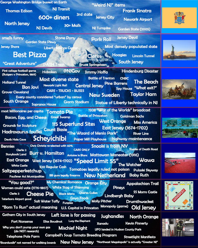 Qwertyact OP t1_j260smi wrote on December 29, 2022 at 10:29 PM Reply to New Jersey Iceberg (1st draft, plz be gentle) by Qwertyact Increasingly esoteric factoids about the Garden State, inspired by a Maryland one I saw yesterday. Please ask questions, some of them are a little weird, lol, and I'd like to make a second draft that's more clear and understandable (Already just realized I forgot bagels) The Maryland one: https://www.reddit.com/r/maryland/comments/p54nlb/the_maryland_iceberg/ Permalink 17