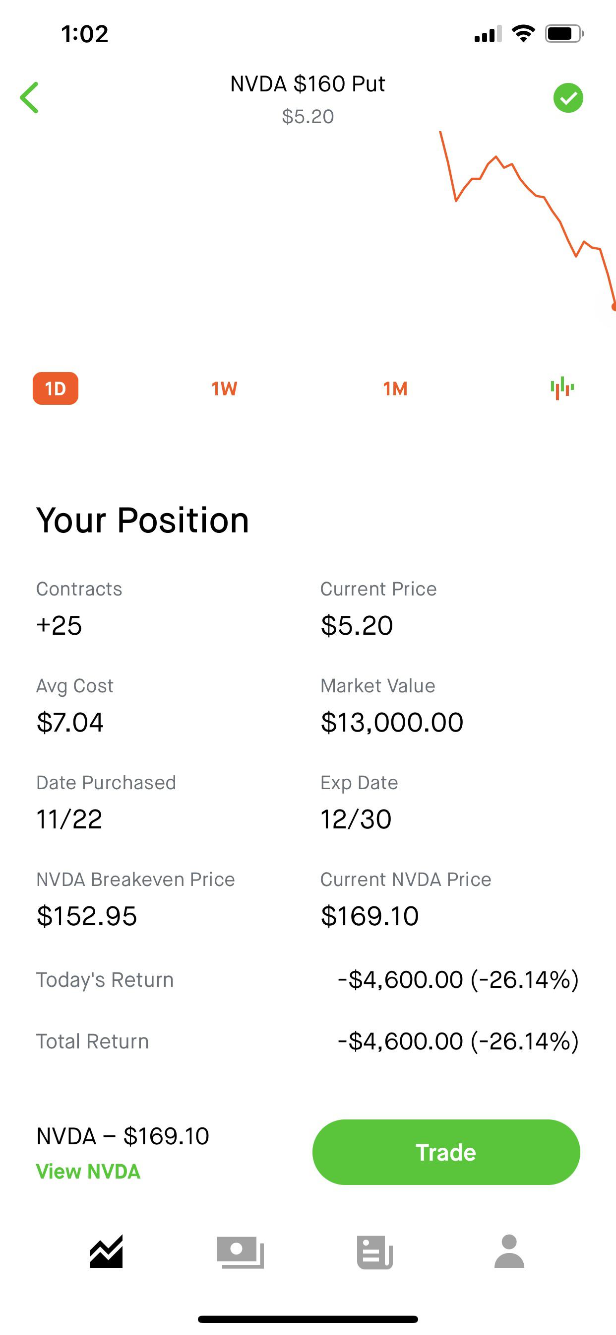 StevHa93 OP t1_iyexzez wrote on November 30, 2022 at 9:58 PM Reply to comment by Beautiful_Cookie_639 in I’m so fucked for believe in JPow and his words by StevHa93 I don’t know yet. I’ll wait until after dec14 to make my next move. It’s 50-50 depend on how the market will go after dec14. For now I’m enduring the pain Permalink Parent 6