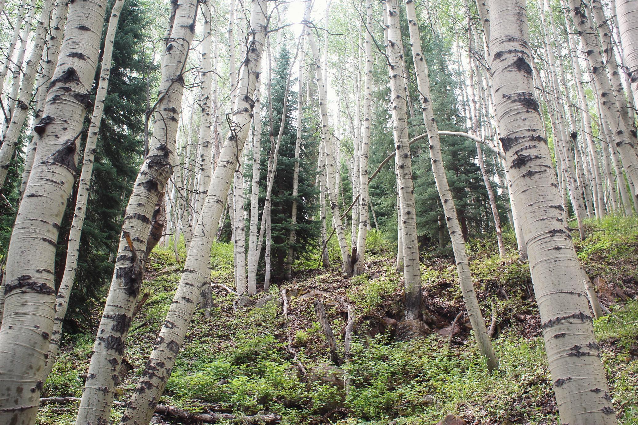 The two are super similar, but birch trees tend to grow natively in the Eastern US rather than out west in CO. Also, it's almost too hard to tell from my picture, but the bark was really smooth (not peely) and the leaves were dark green. I'm pretty sure it's an aspen forest, but it's hard to tell sometimes ¯\(ツ)/¯