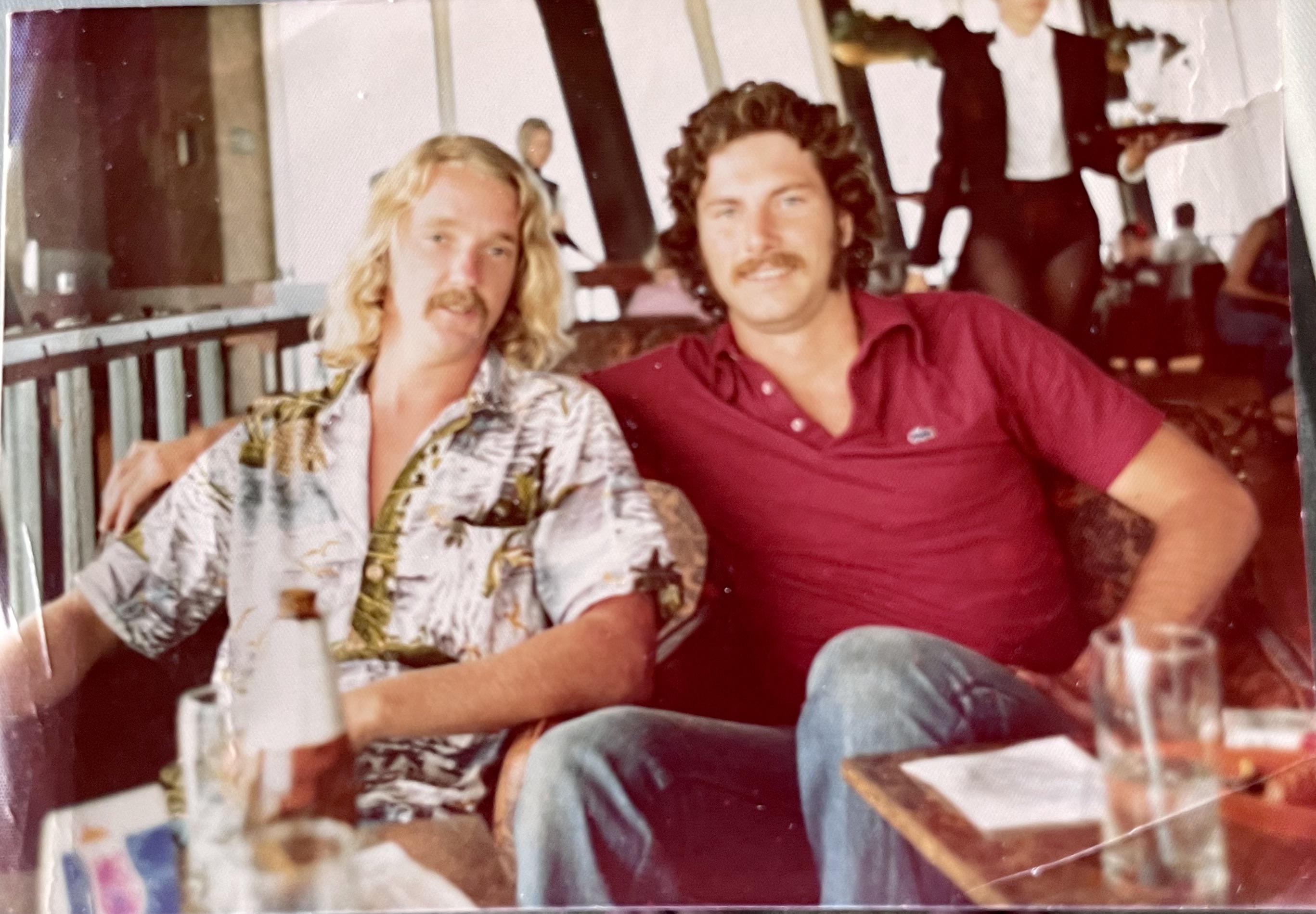 Reply to comment by dh1011- in Best bud and I in 1976 on a road trip. Some fancy club in New Orleans for a bit of day drinking. We’re still best friends to this day, although our hair is less and our weight is more. by dontlietomeagain