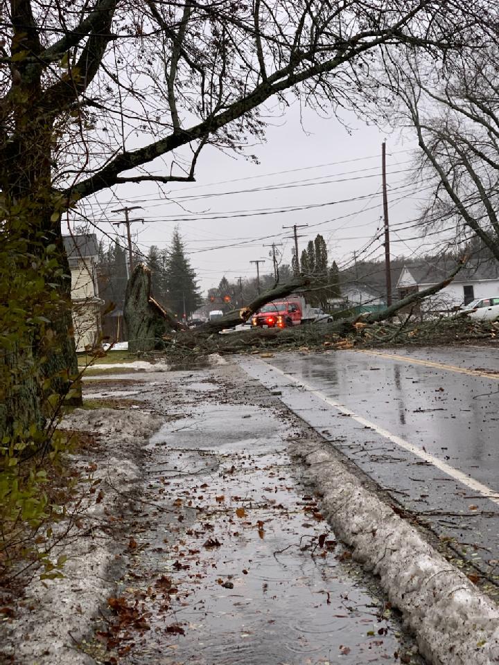 On high street behind CVS. A transformer also started on fire further up by Goodwill. Thankfully as far as know no injuries or property damage.